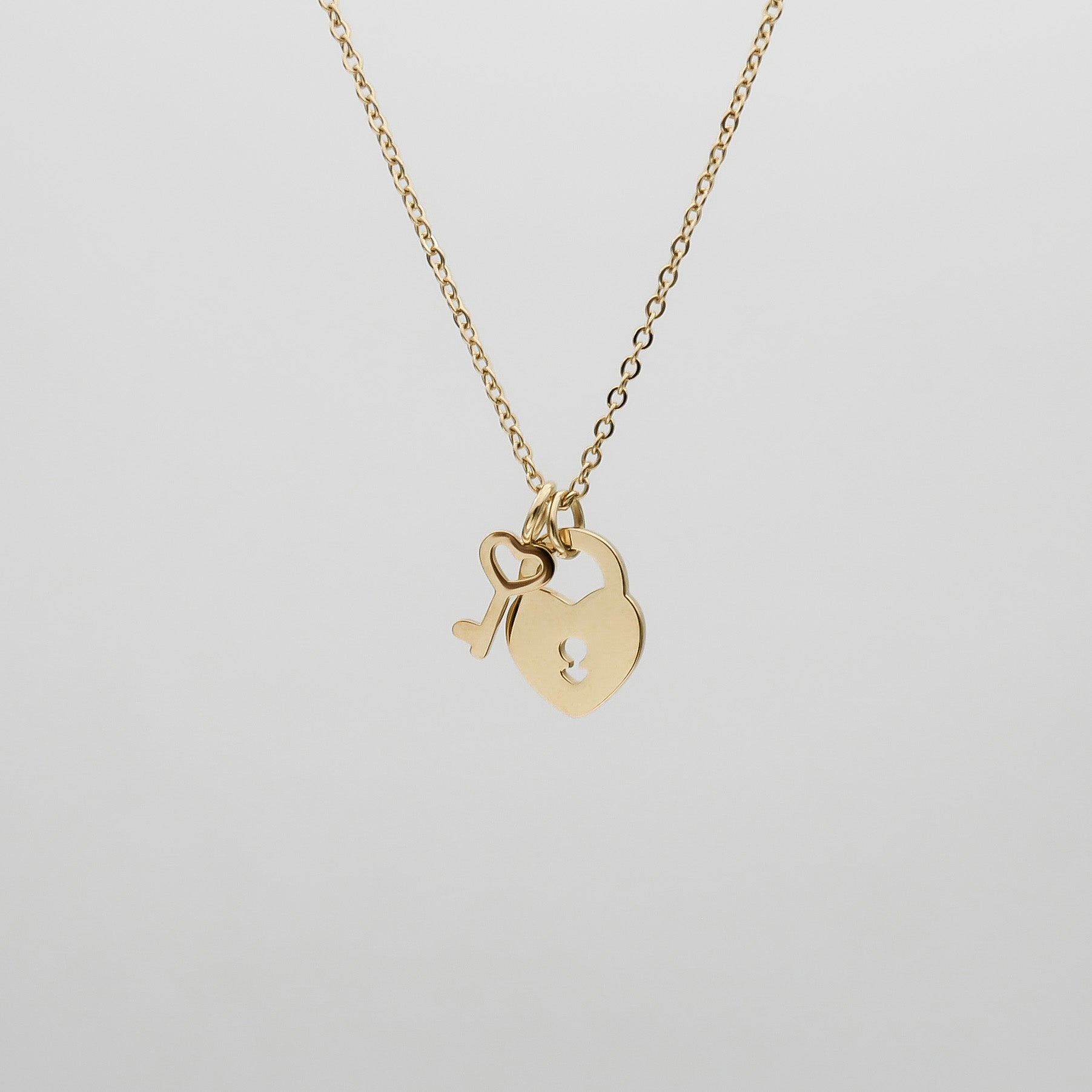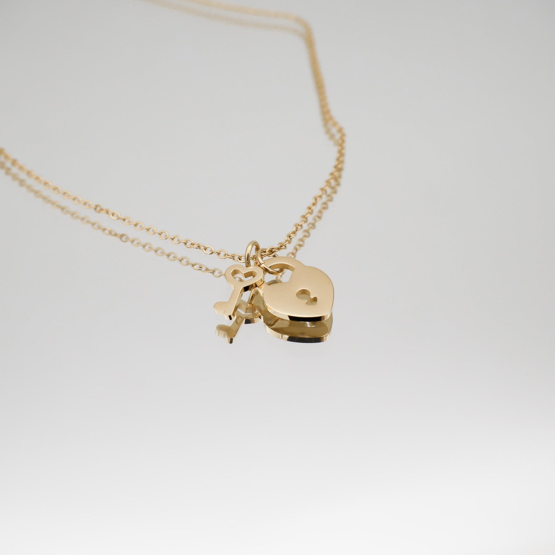 Secure your look with our dainty Lock & key Pendant. A great singular piece that also works well layered with a range of PRYA chains.