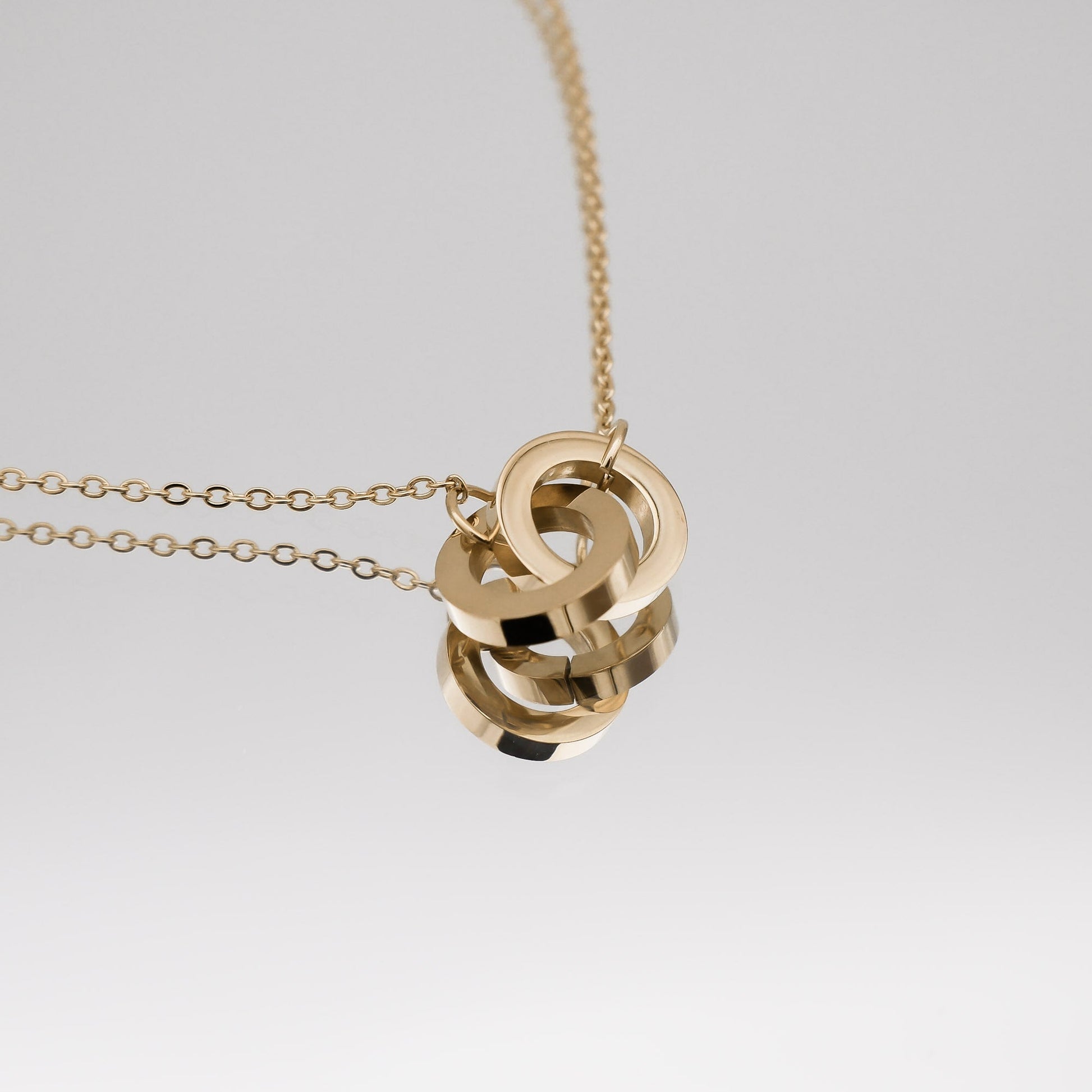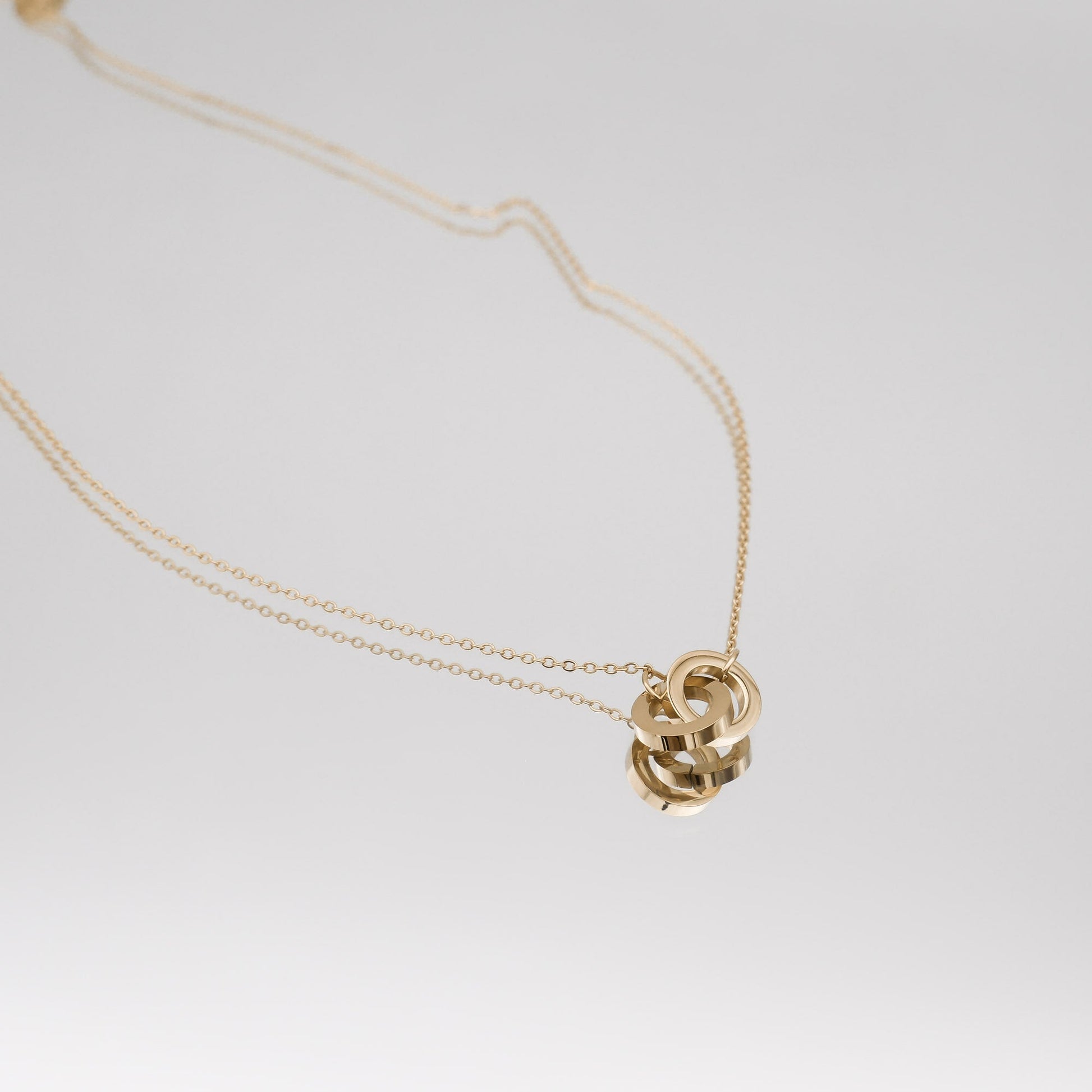 Our Amara Pendant is a dainty piece of jewellery crafted to symbolise unity and everlasting bonds. Featuring suspended 18k gold-plated interlocking hoops, these delicate, bonded rings are designed to add subtle elegance to any outfit. The minimalist design ensures versatility—wear it alone for a sophisticated statement or layer it with PRYA’s signature chains for a personalised, on-trend look.