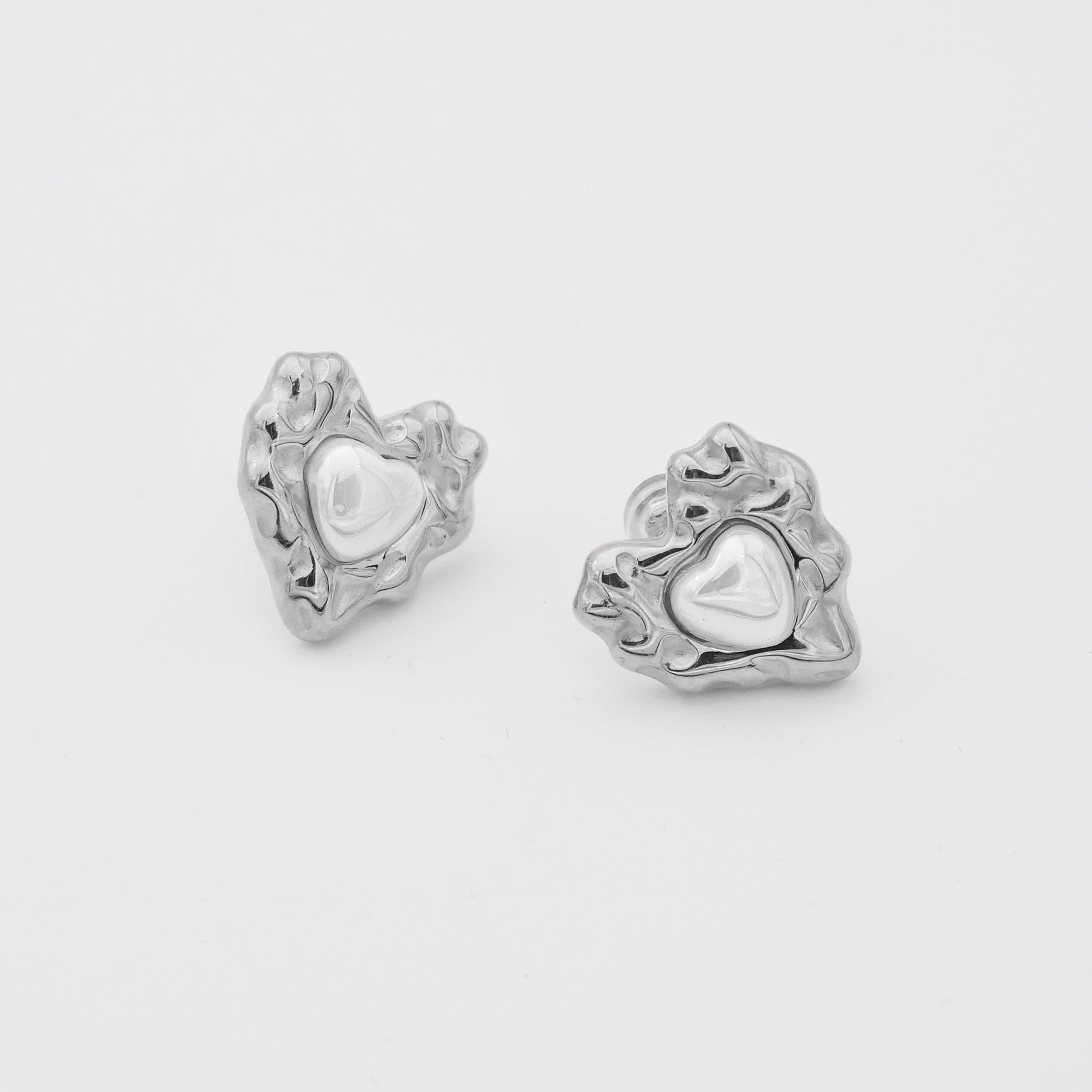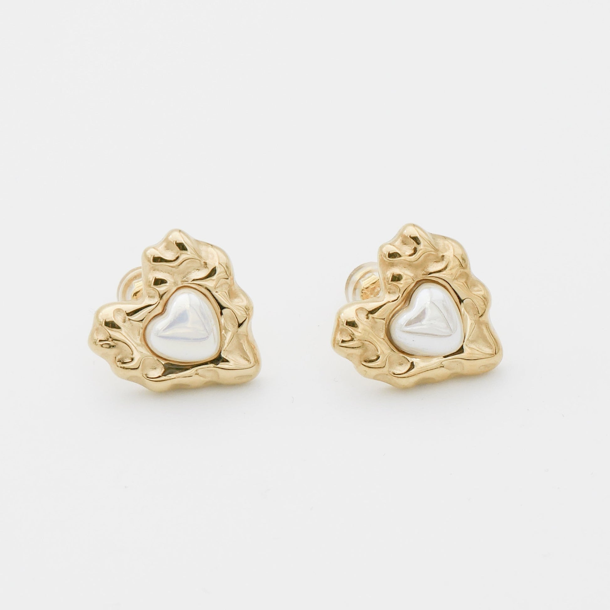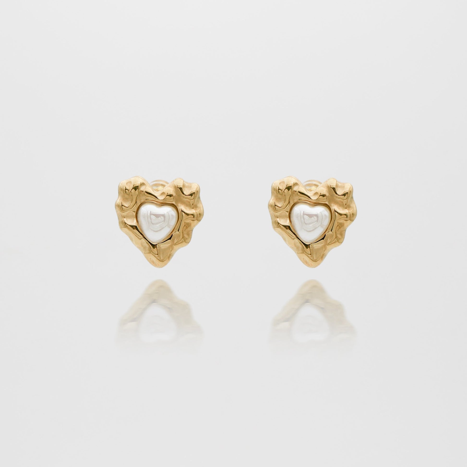 Ignite romance and passion with our Amber Earrings. These gorgeous earrings feature a textured heart design with a sophisticated pearl centrepiece. Available in both 18k gold plating and silver finishes, they offer versatility to match any style. Perfect for adding a touch of love and sophistication to any outfit.