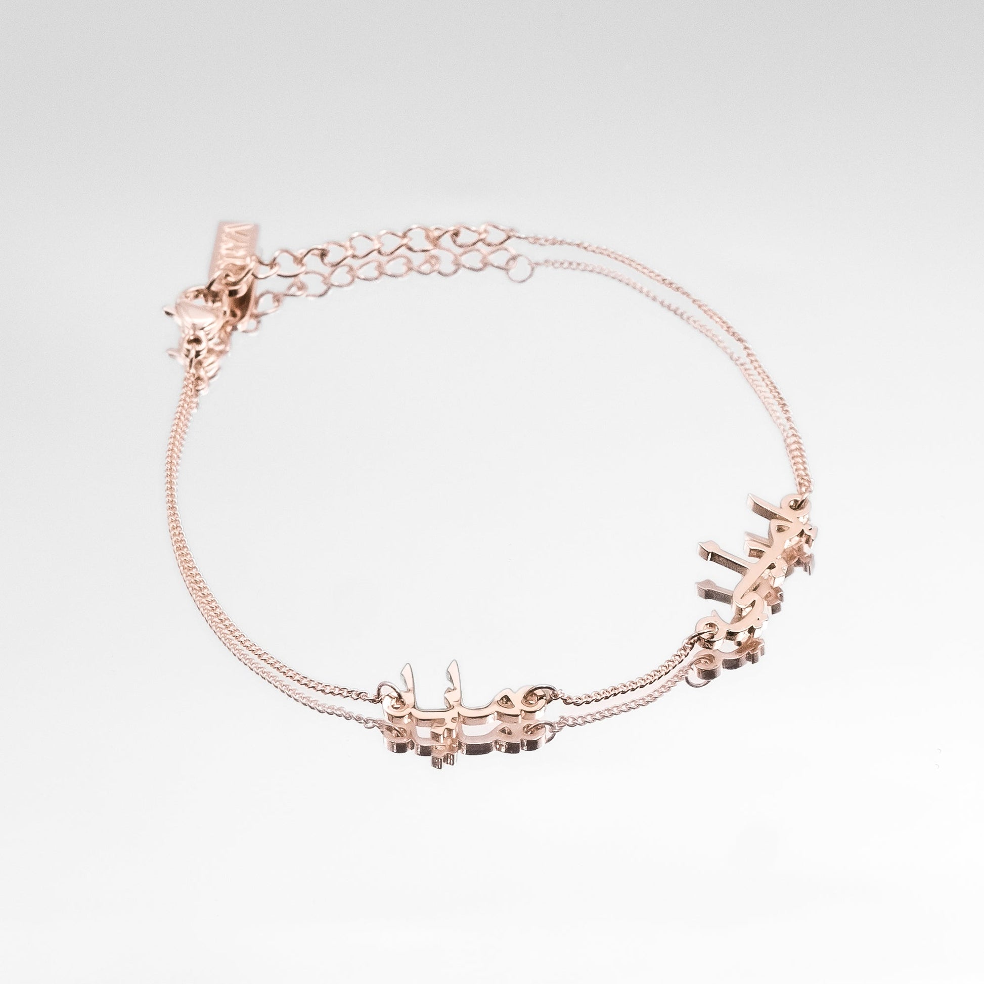 Whether you’re celebrating family, friendship, or self-expression, this 18k gold plated, rose gold plated or silver plated bracelet is a timeless keepsake made just for you. If you’re unsure of the translation, simply enter names in English, and we’ll expertly craft them in stunning Arabic script. Visit our Arabic Collection for more beautiful custom made pieces.