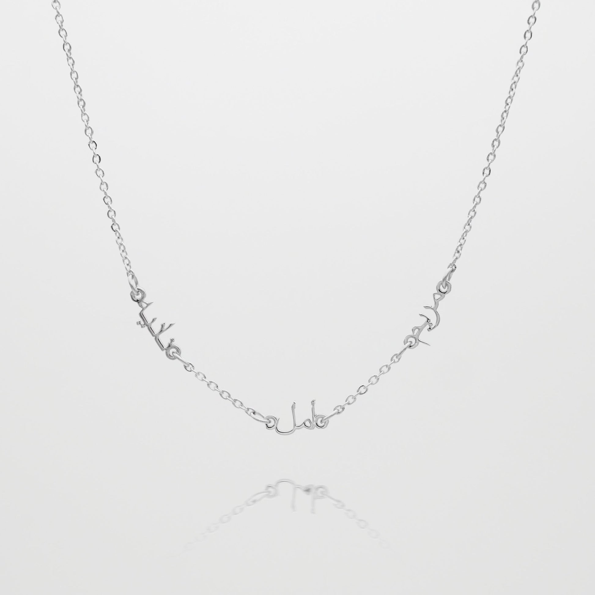 Introducing our exclusive Arabic Multiple Name Necklace, the perfect accessory to elevate any outfit. Embrace and cherish the names of your loved ones and personalise your custom name necklace with up to four names, beautifully crafted in elegant Arabic script. Whether celebrating family, friendship, or self-expression, this necklace is a timeless keepsake made just for you.