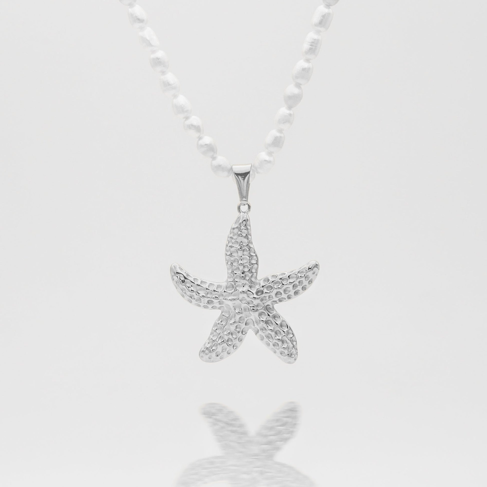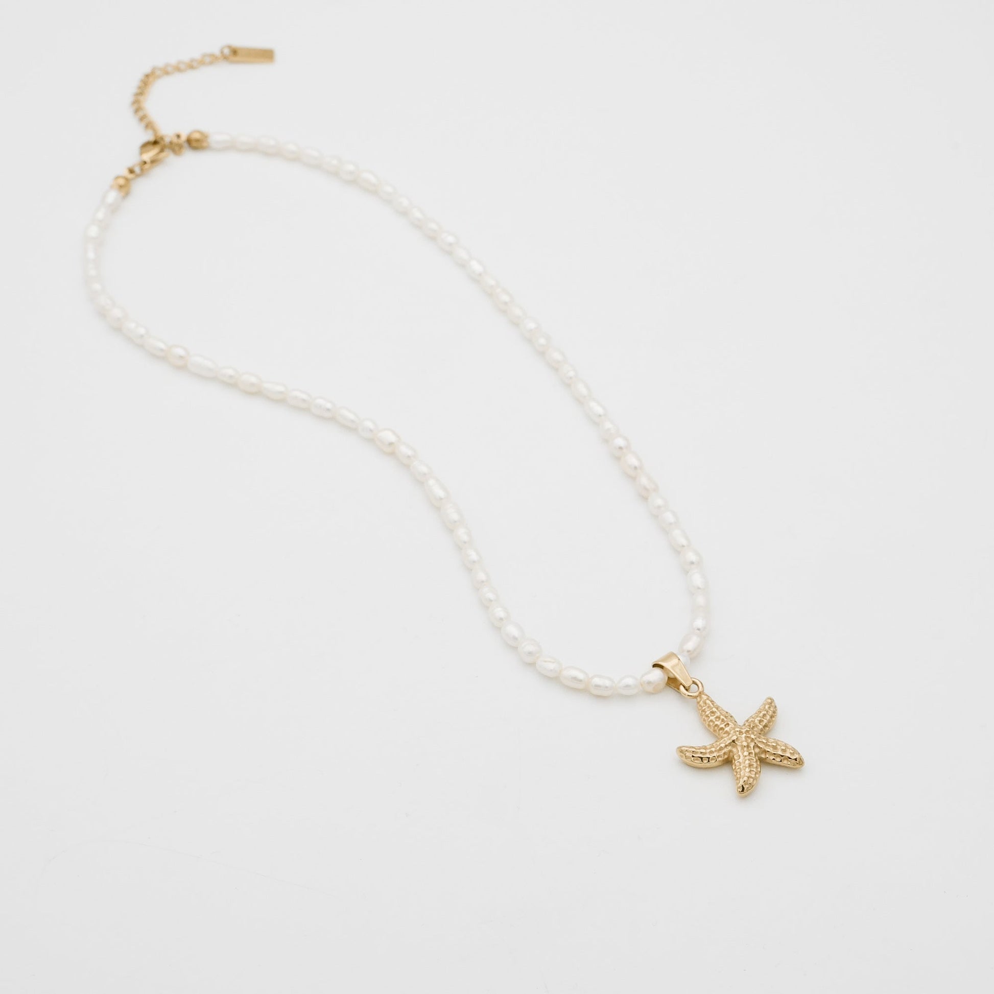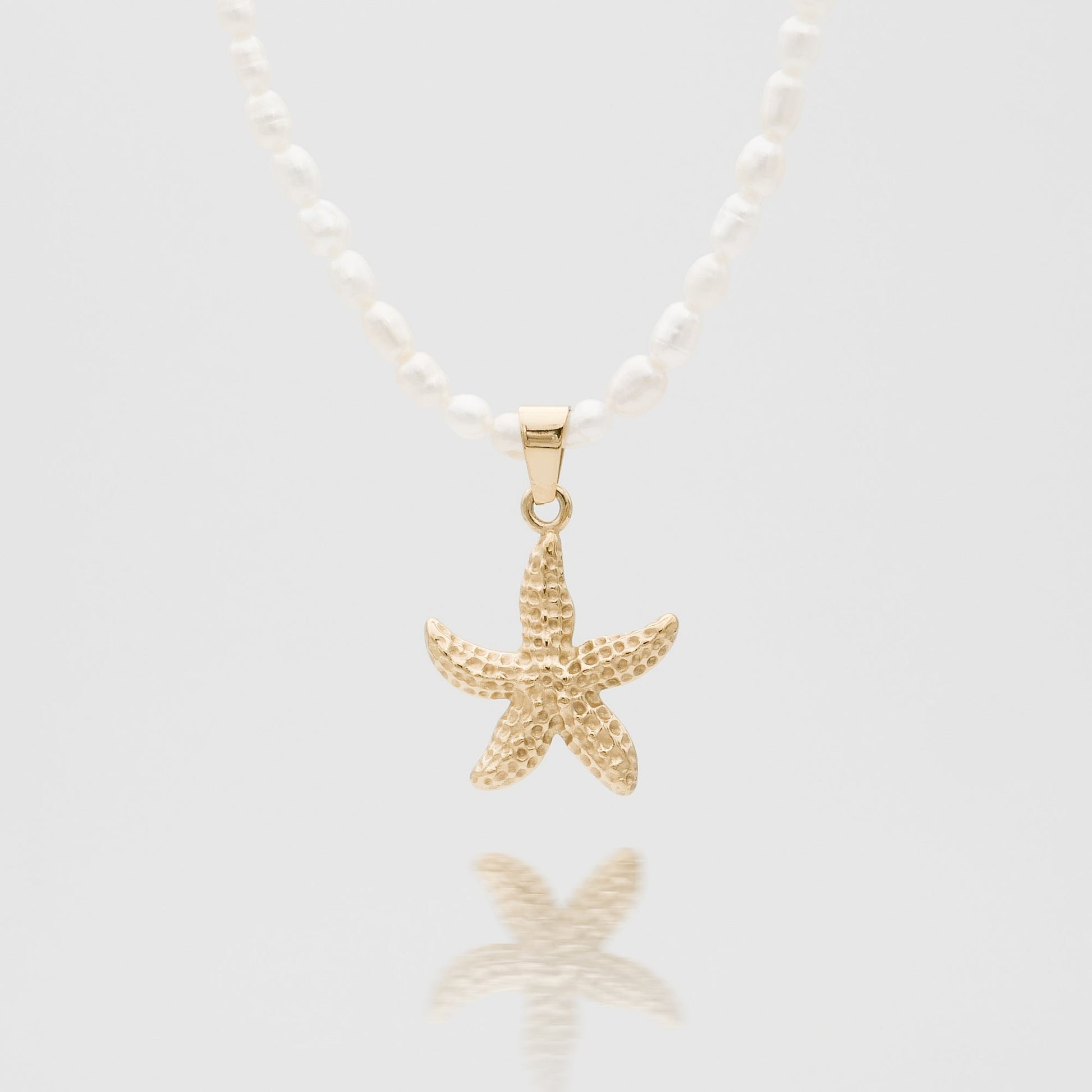 Inspired by the beauty of the Ocean, our Ariel Starfish Pearl Necklace features a stunning Gold Starfish Pendant with intricate textured detail, accented by a lustrous Freshwater Pearl. Whether you're looking for a Statement necklace or a Dainty/ Mini one, our unique combination of Gold or Silver and shimmering Pearls make this luxurious necklace a must have for any Jewellery collection.