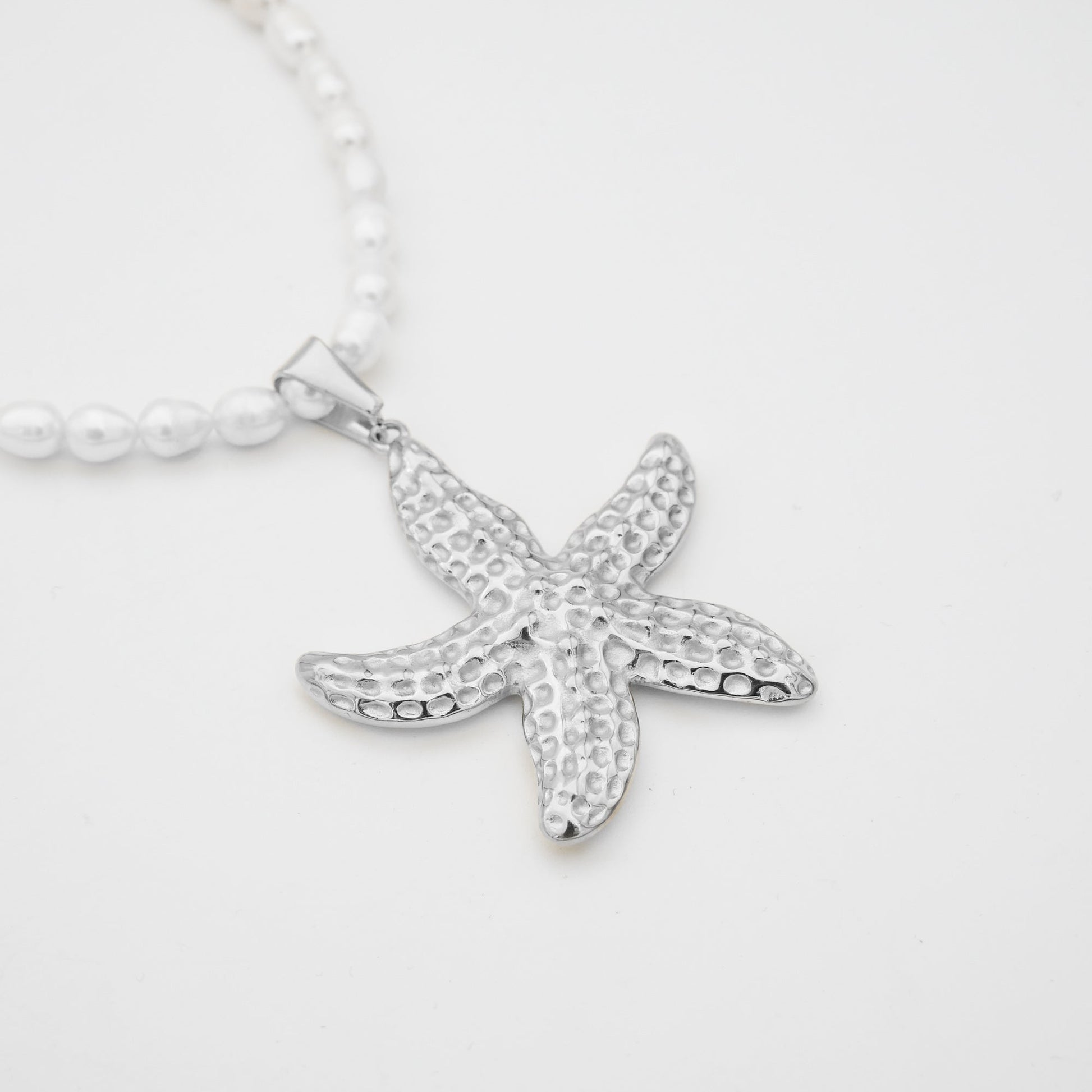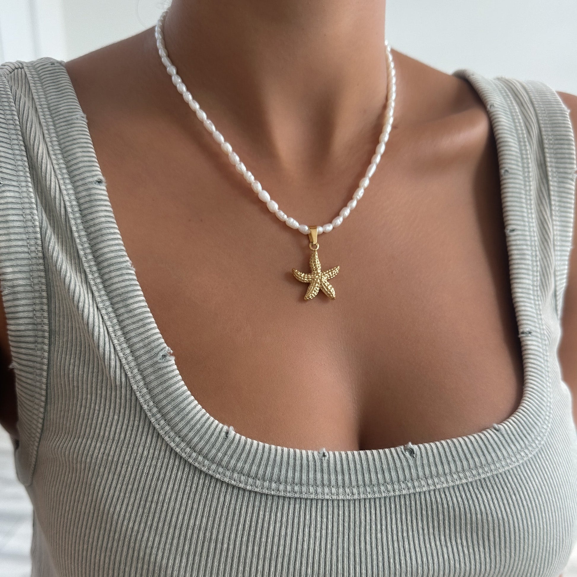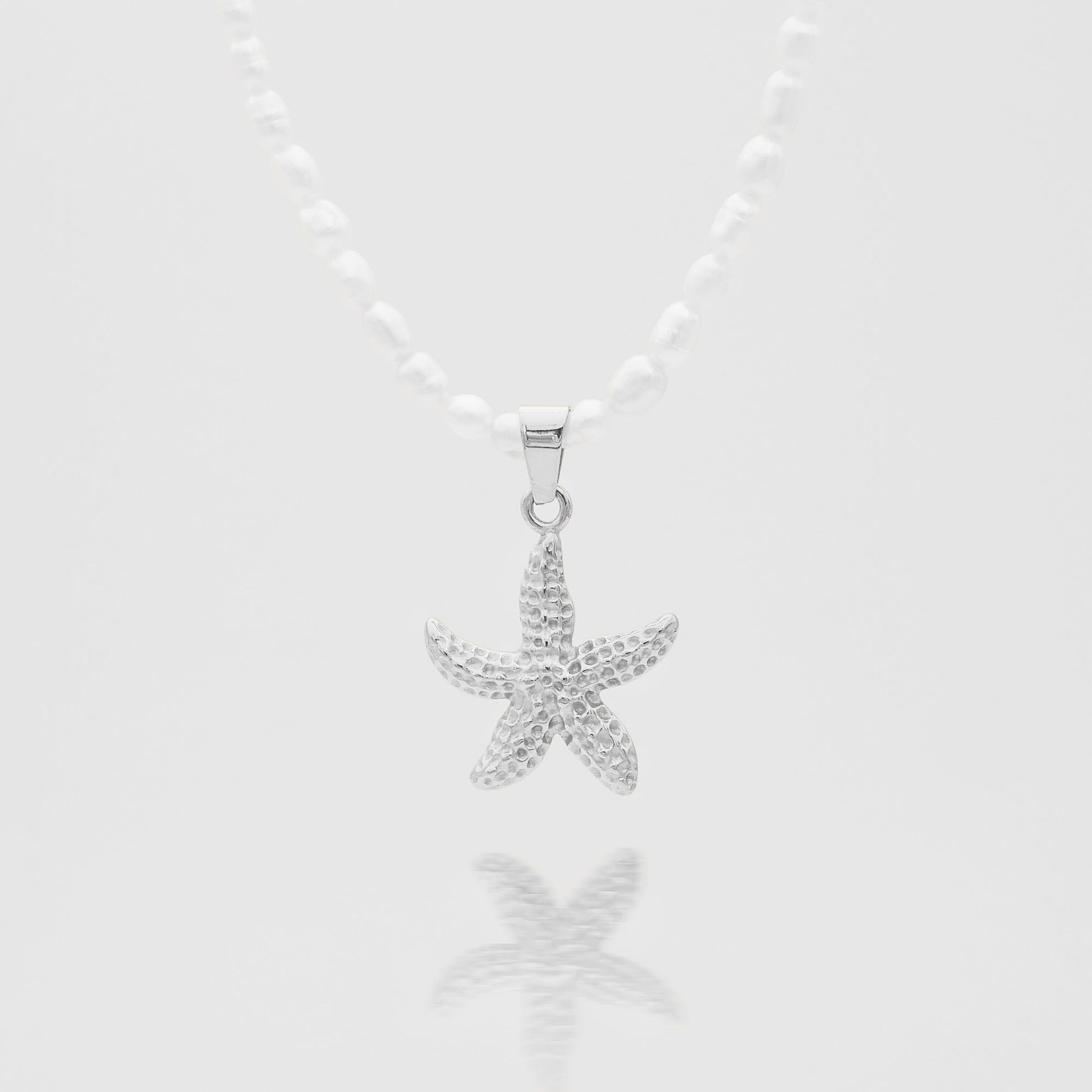 Inspired by the beauty of the Ocean, our Ariel Starfish Pearl Necklace features a stunning Gold Starfish Pendant with intricate textured detail, accented by a lustrous Freshwater Pearl. Whether you're looking for a Statement necklace or a Dainty/ Mini one, our unique combination of Gold or Silver and shimmering Pearls make this luxurious necklace a must have for any Jewellery collection.