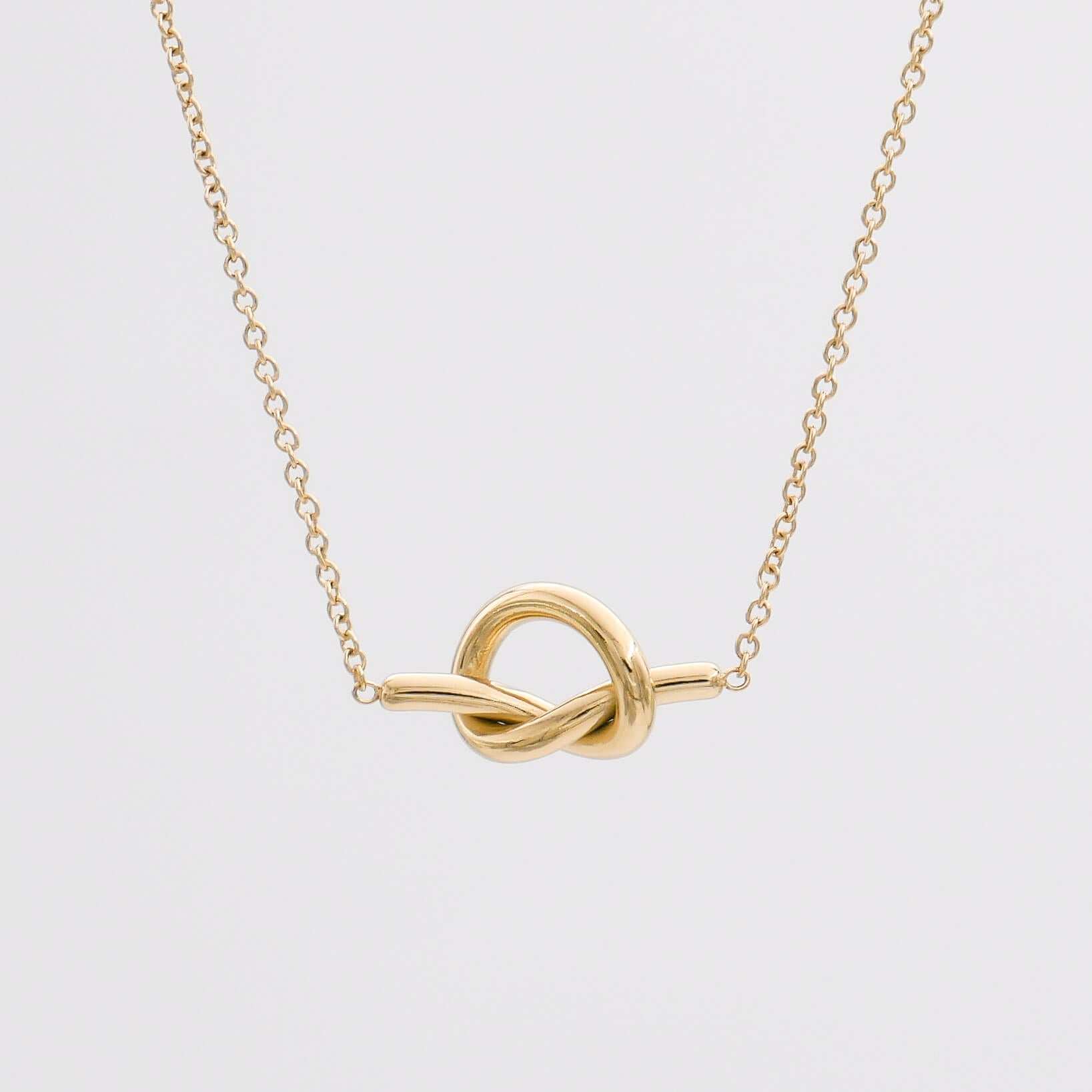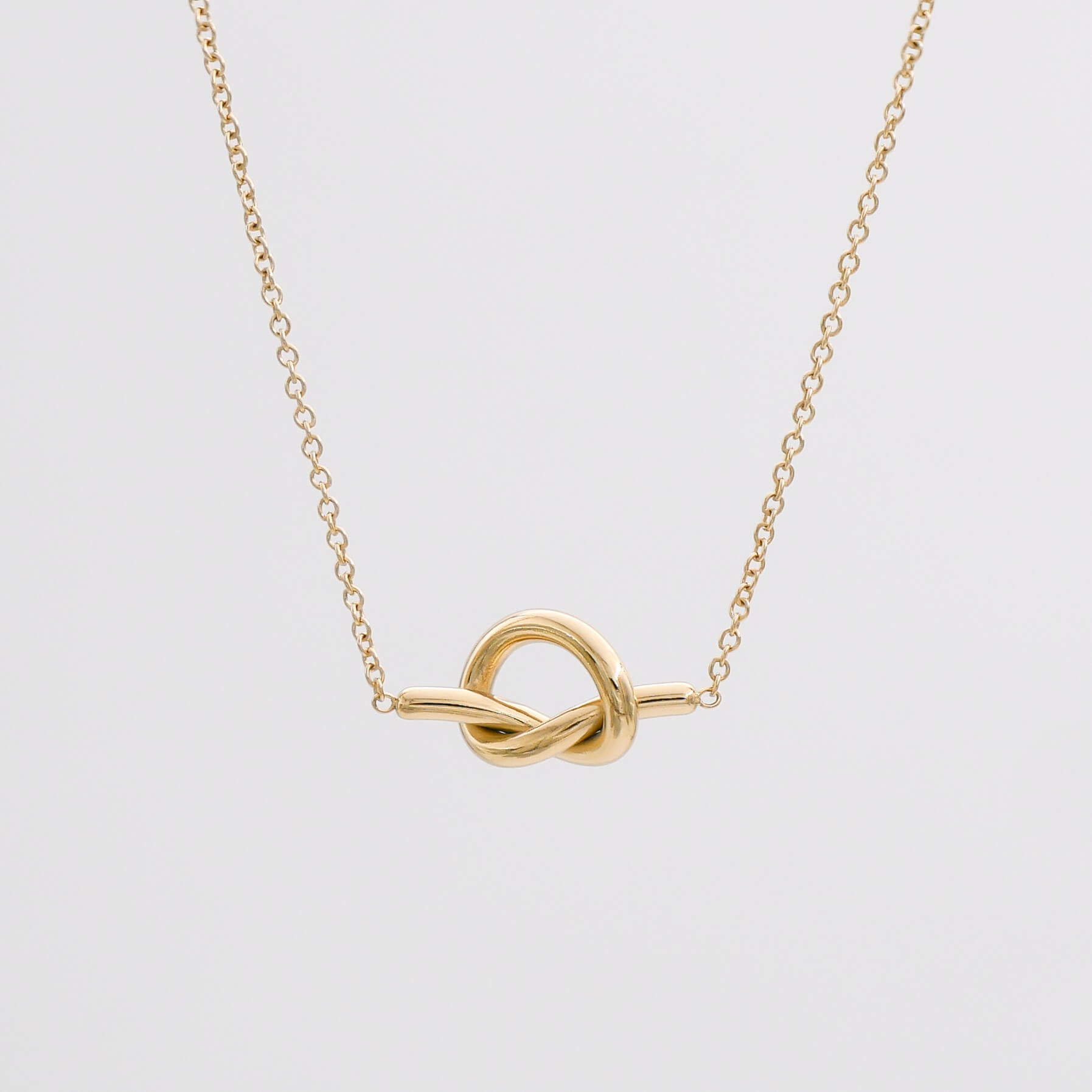 A symbol of an unbreakable bond that cannot be pulled apart. This elegant Ayla pendant is carefully crafted into a dainty interlocking knot and suspended on a delicate chain.