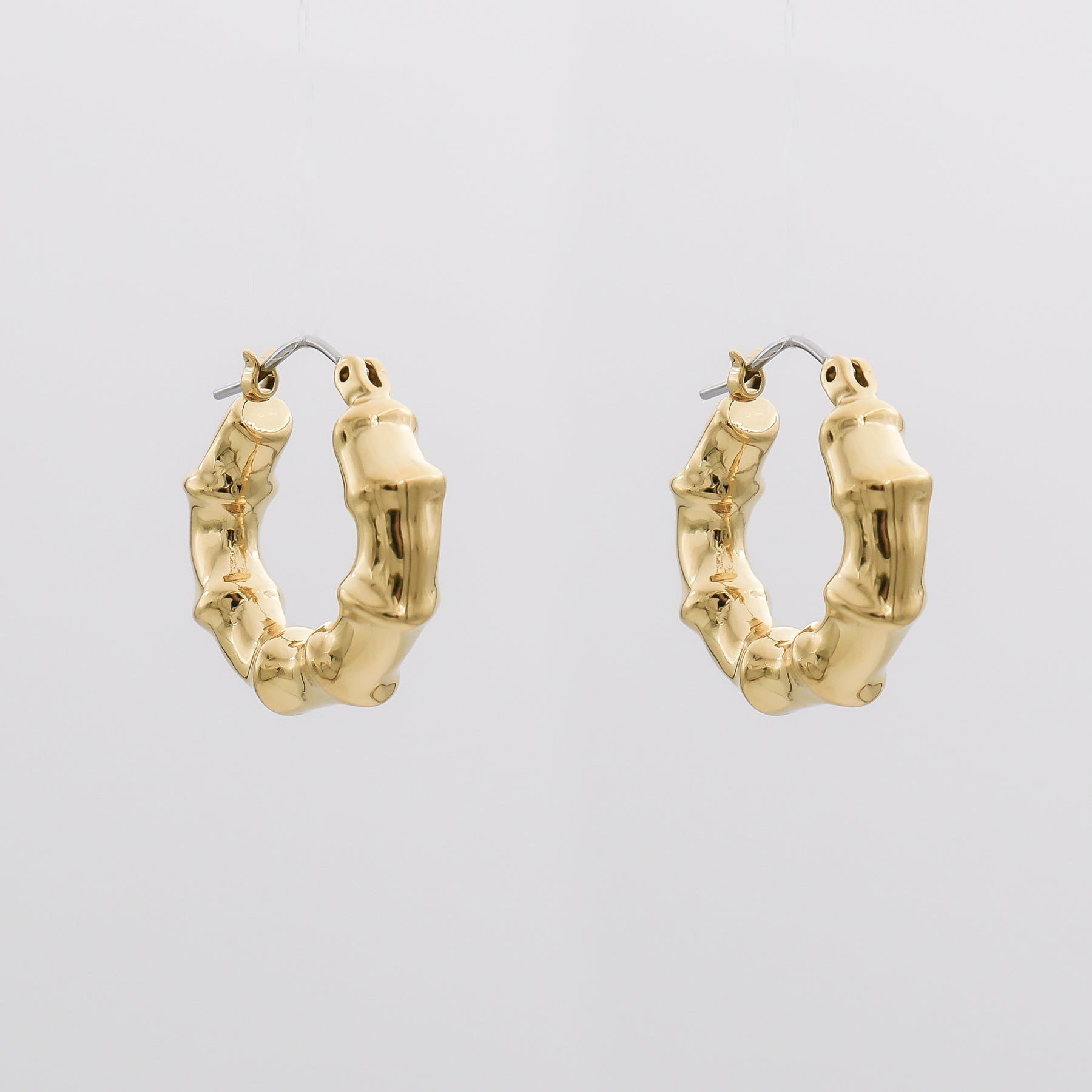 The captivating Mini Bamboo earrings feature a bamboo design, adding a beautiful twist on the time-less classic hoop earrings. The small size makes them perfect for everyday wear. Pair with your favourite pendant chain necklace and stacking rings to complete your look.