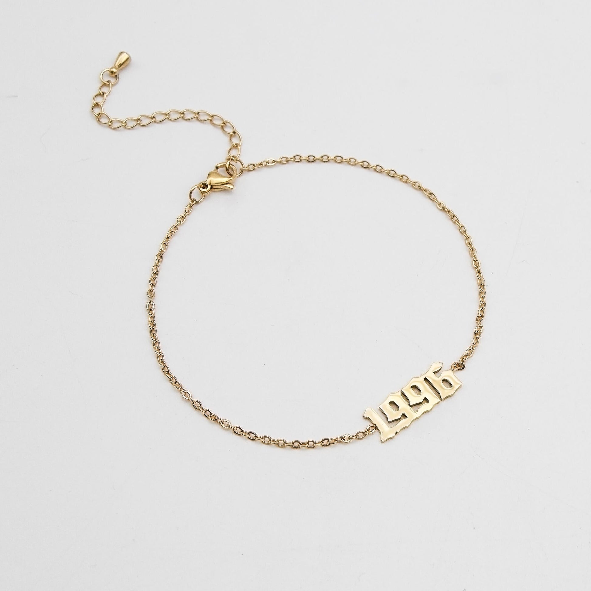 This anklet is your go-to summer essential but works year-round with the right styling. It’s the perfect alternative to a name anklet and makes a thoughtful gift for a best friend, sister or yourself. Pair it with our Birth Year Necklace or custom name jewellery to complete your look. View our Custom Birth Year Anklet for full personalisation if you want a different birth year.