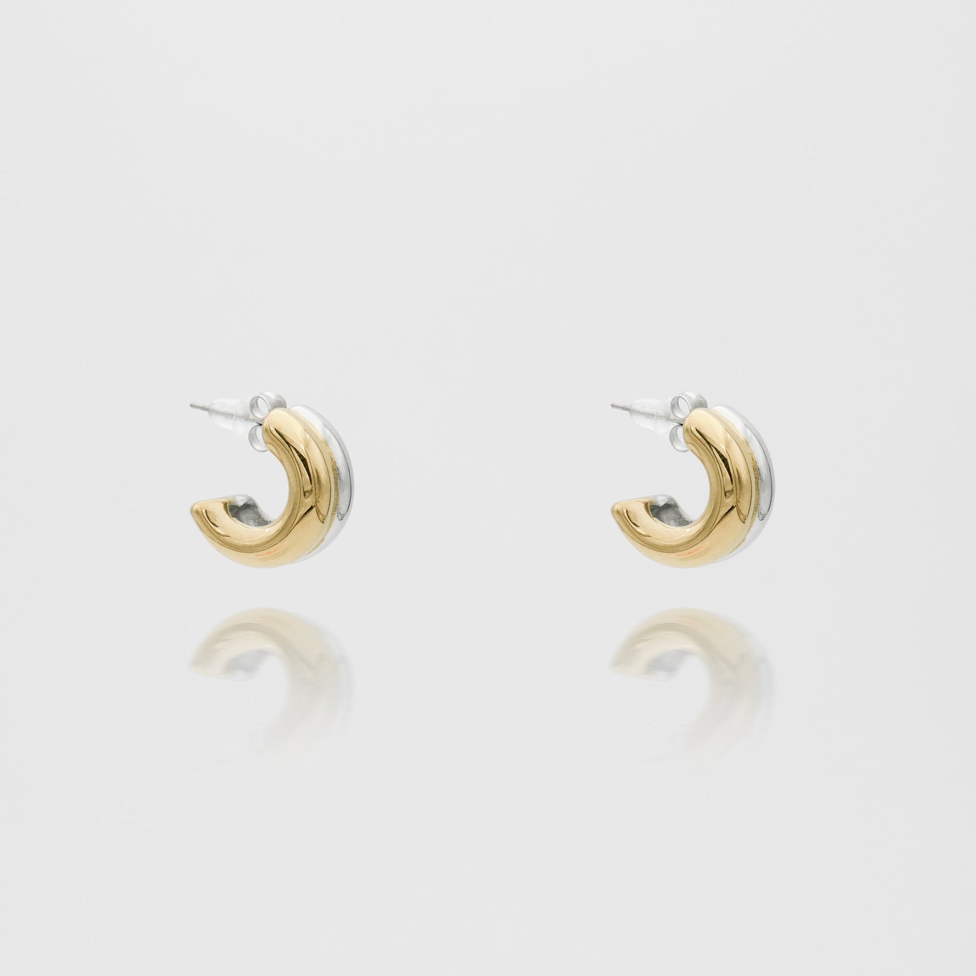 Our Bonnie Huggie Earrings has a striking double-banded design. These versatile huggies blend seamlessly into any earring stack or make a statement on their own. Available in Gold, Silver, and Mixed Metal finishes, they are the perfect blend of style and sophistication.