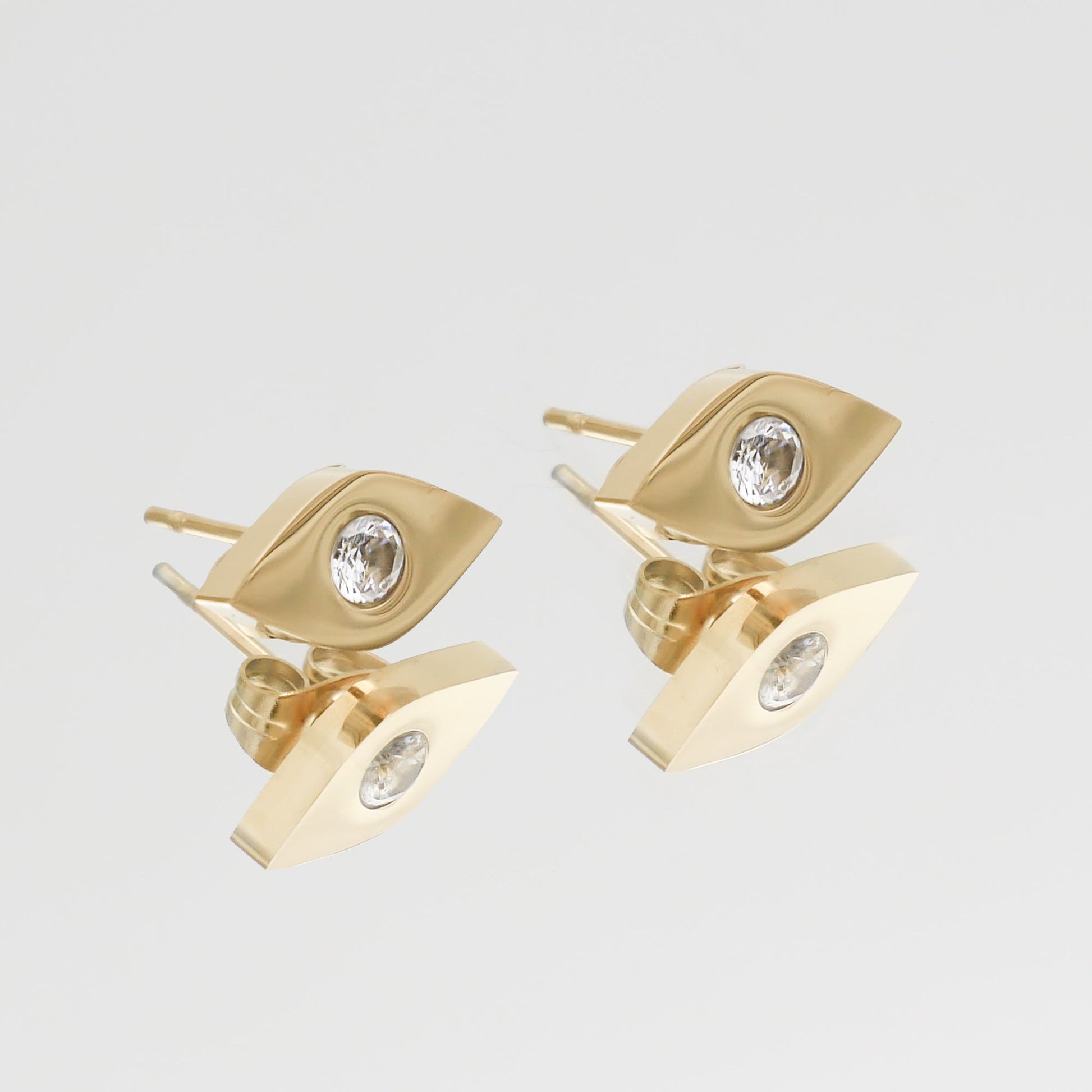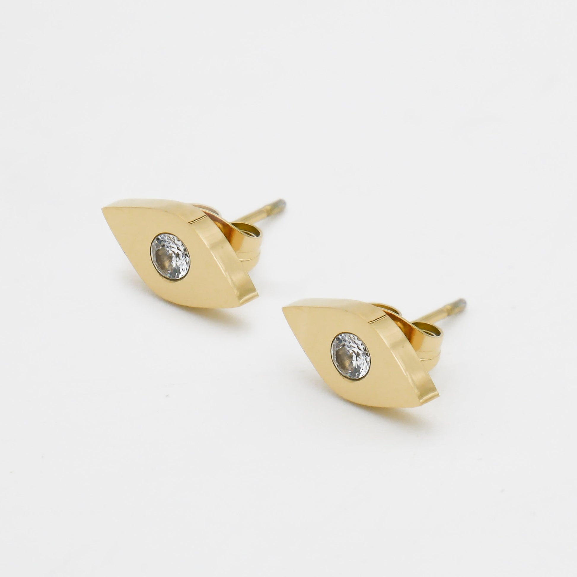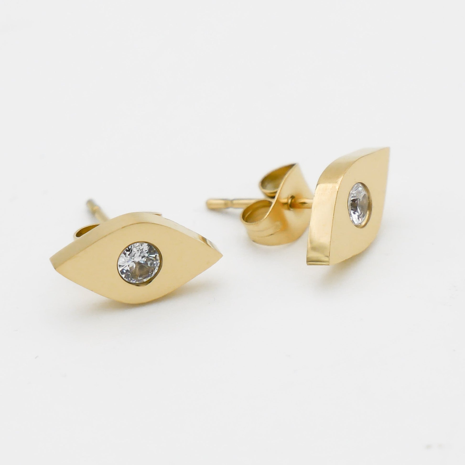 Our Cassandra Eye Stud Earrings in Gold or Silver show quality and elegance. They feature a dainty design of the Evil Eye with CZ in the centre, giving you protection in a subtle stylish look. Crafted with care and attention, these earrings are sure to add a touch of sophistication to any ensemble.