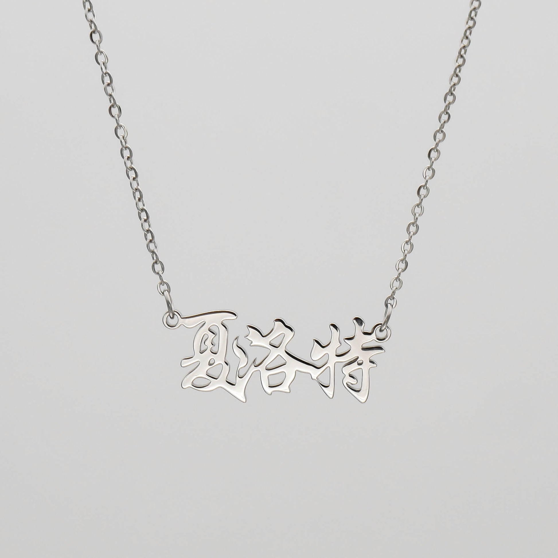 Our custom Chinese Name Necklace has been designed and crafted to showcase the stunning writing style of Chinese characters. This gorgeous custom name necklace offers exotic charm with a contemporary edge.