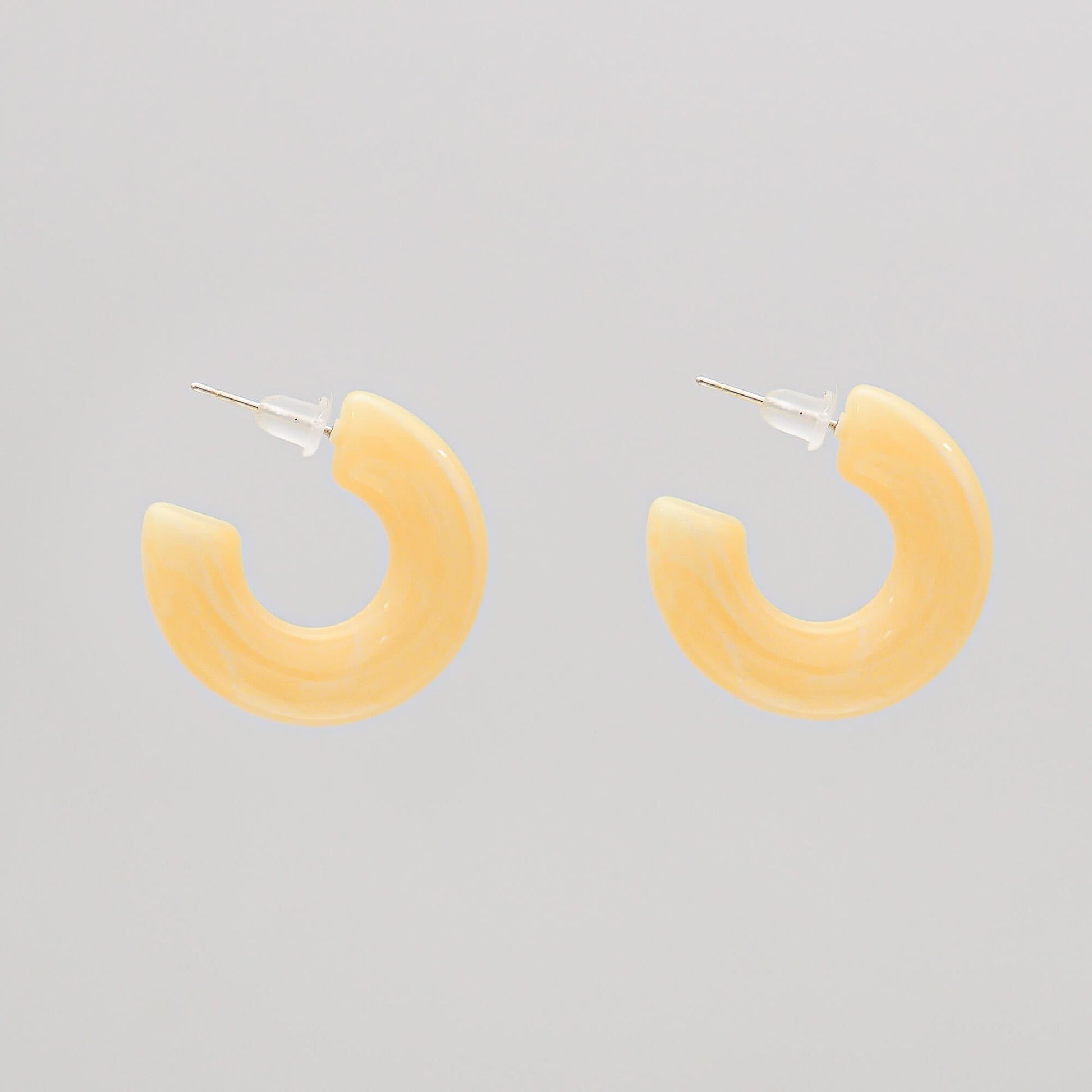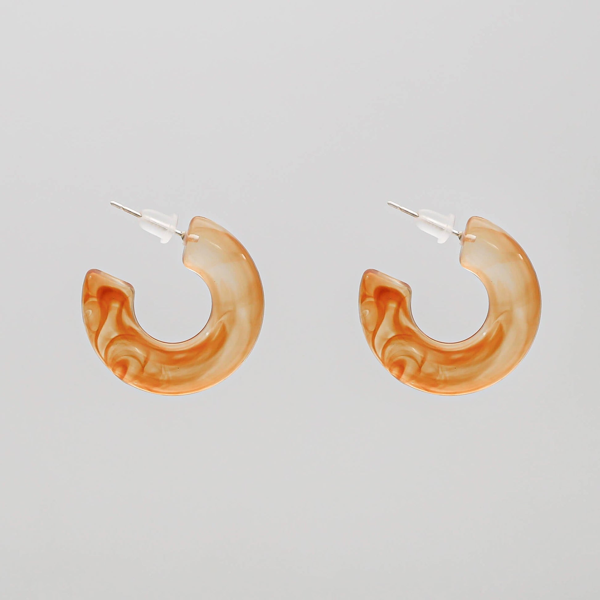 Our Lollie hoop earrings puts a fun spin on the classic hoop style. Featuring a twisted jelly like design, curving around the lobe for a fun statement look. This piece is artistic, beautifully crafted and exudes elegance.