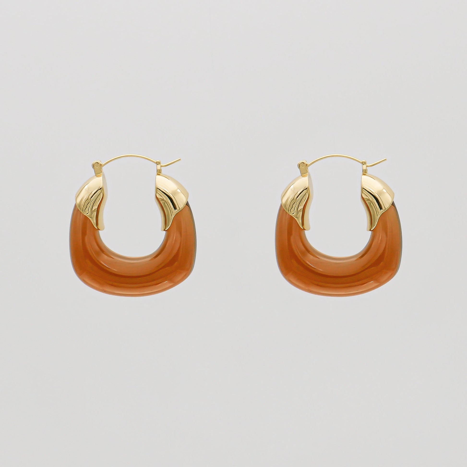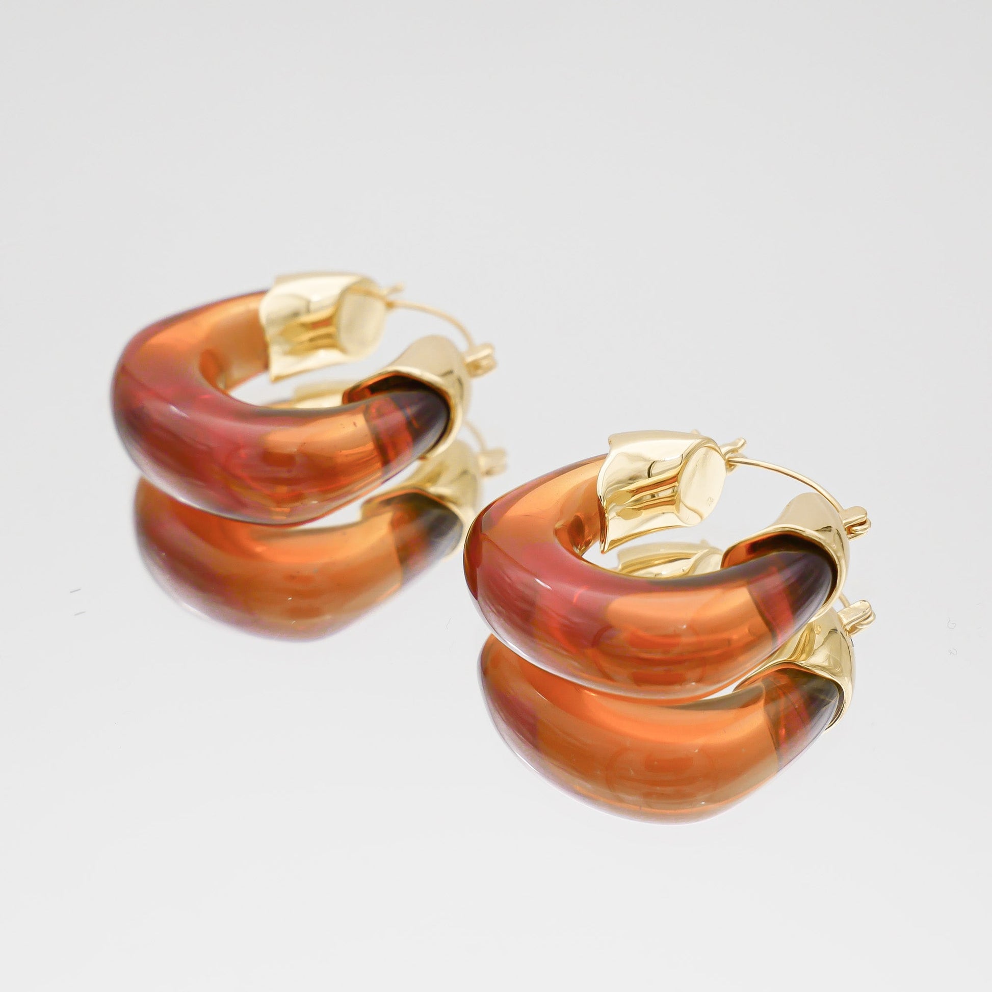 Our Amber Celine lucite hoop Earrings adds a unique shimmer to any look, featuring a unique tubular oval shape, these earrings will add that extra touch you've been looking for. Also available in Clear.