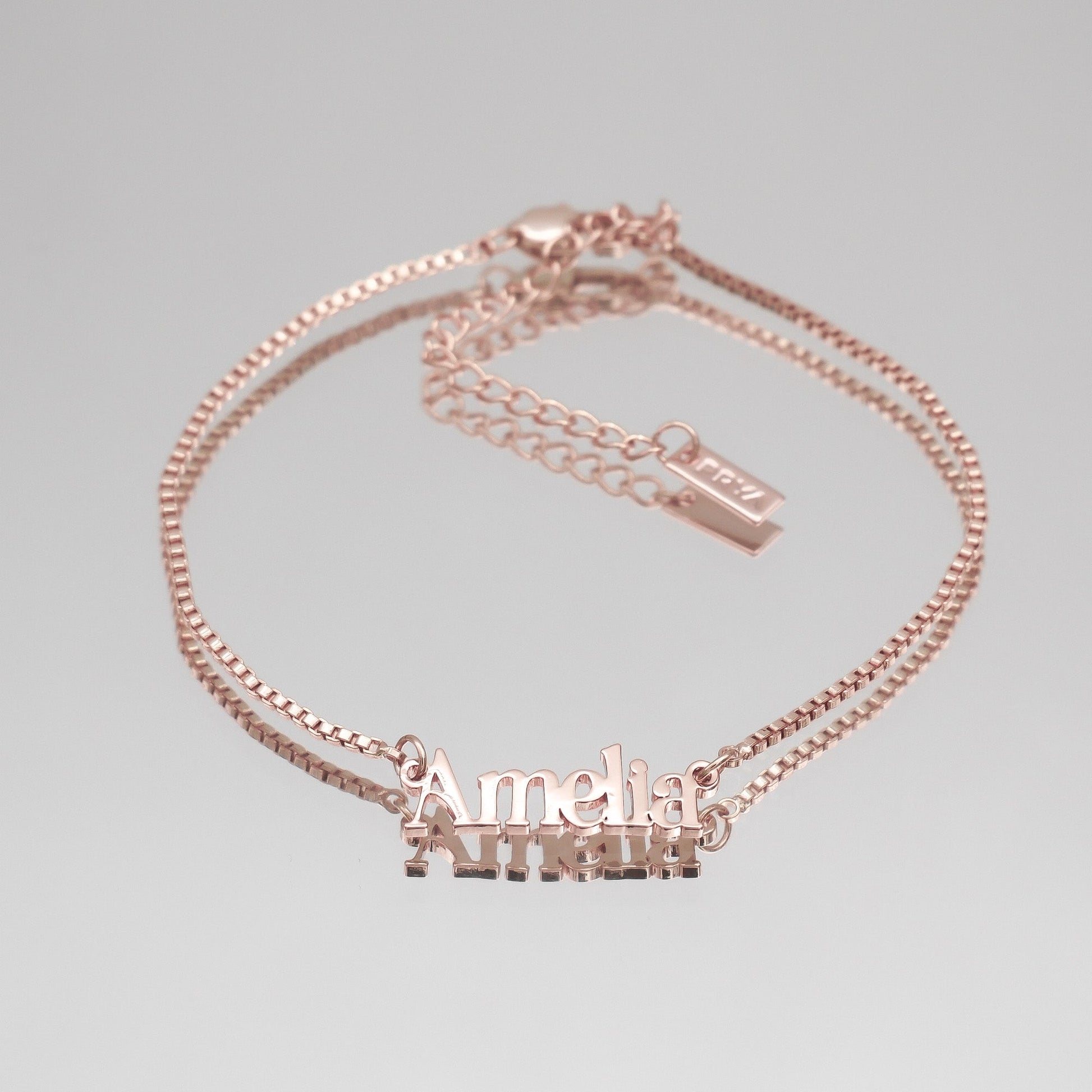 Personalise your look with our Dubai Custom Name Anklet. A beautiful, Classy Font coated in 18k gold, 14k Rose gold or sterling silver.