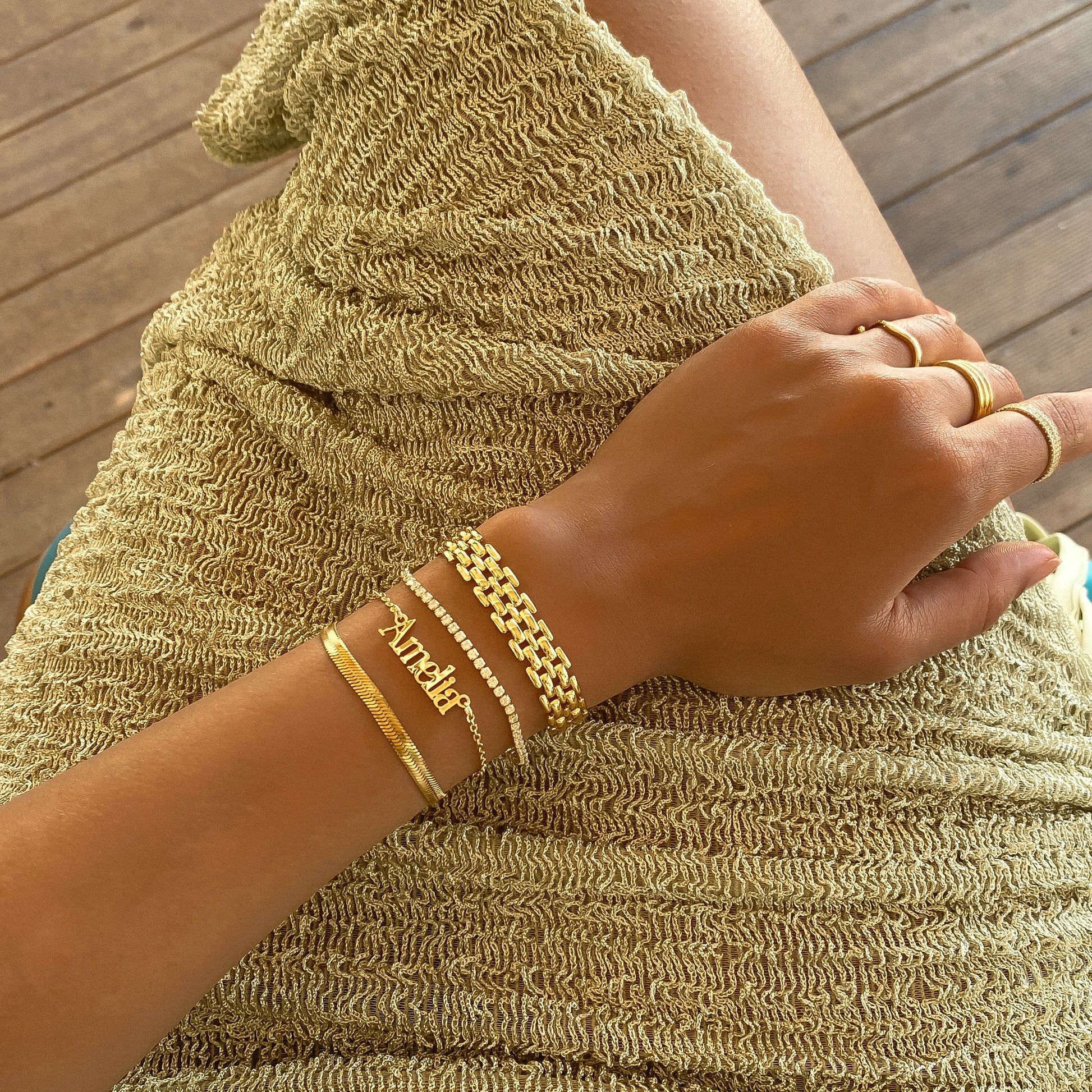 Timeless, elegant, and uniquely yours—the Dubai Custom Name Bracelet is the perfect way to carry a special name close to you. Crafted from high-quality plated 18k gold, silver, or rose gold, this delicate yet durable name bracelet is designed to complement any style.