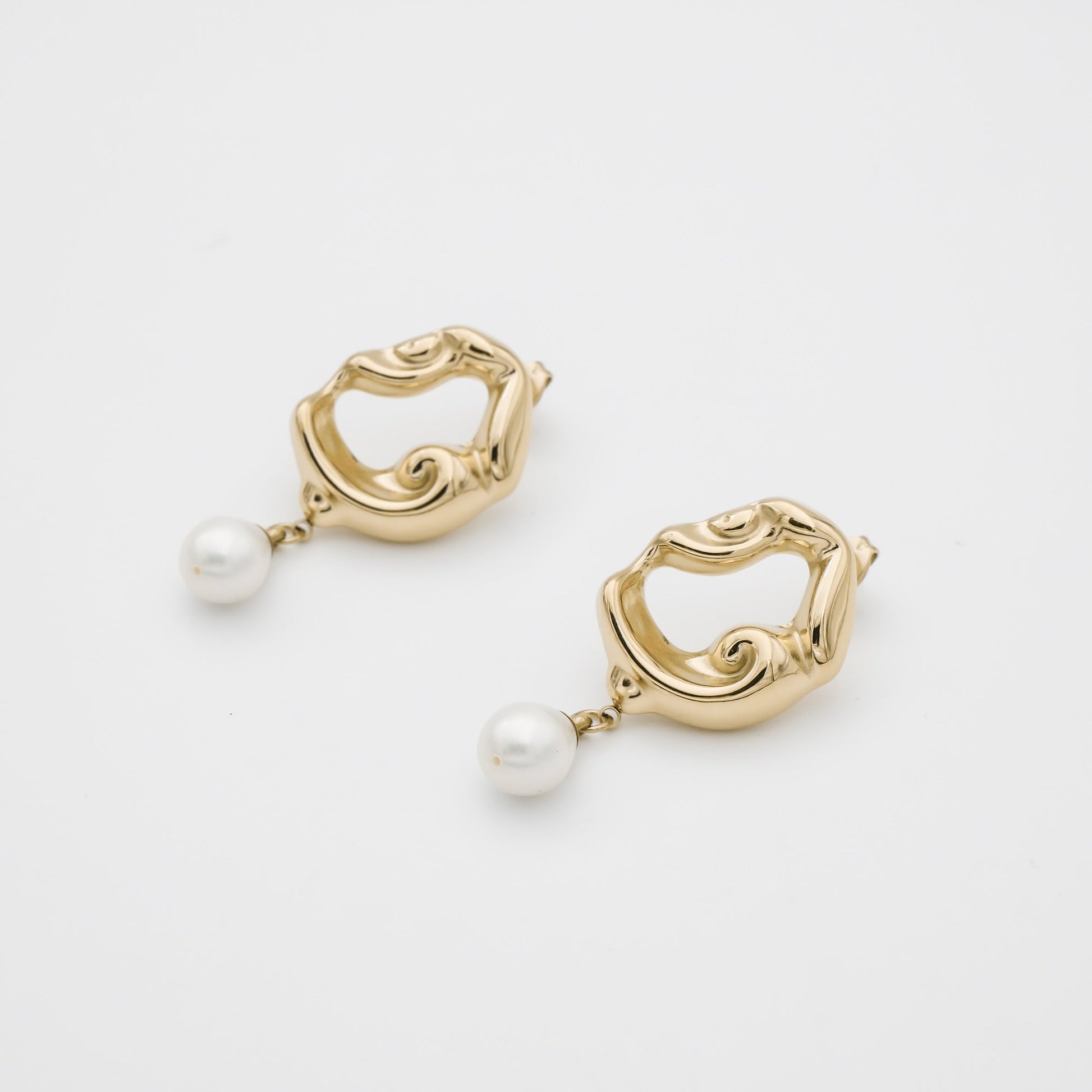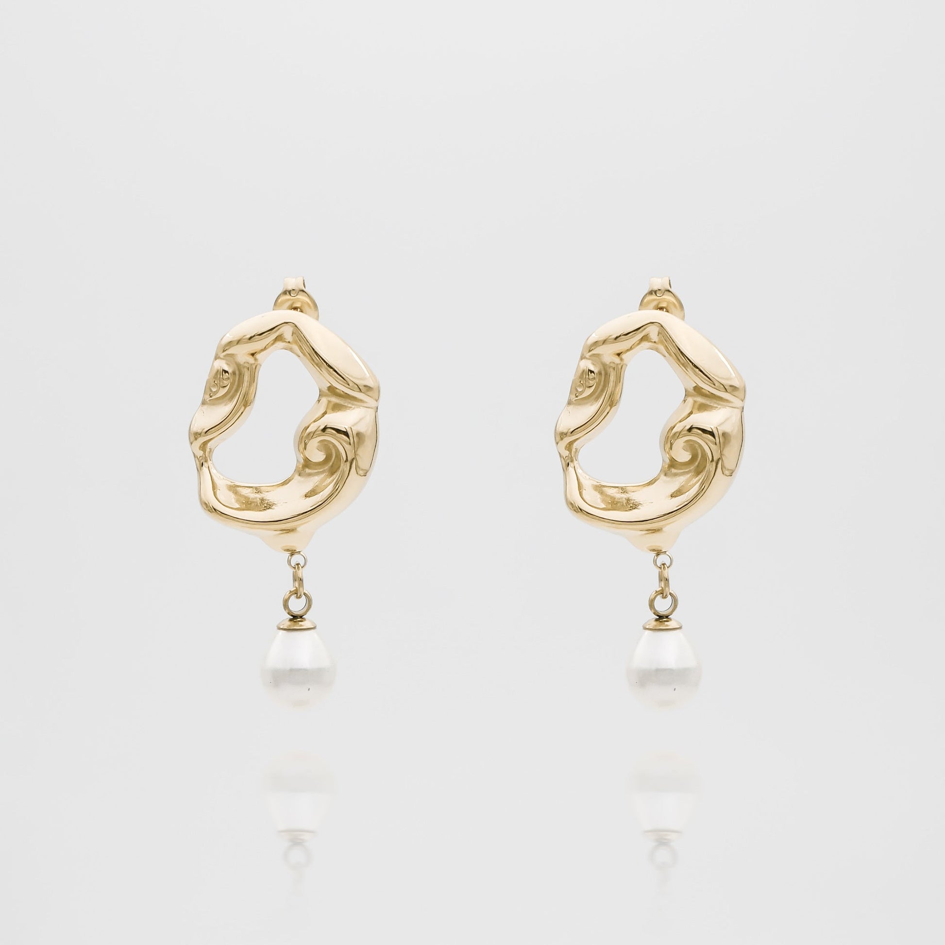 The stunning Eliana Earrings present a striking textured gold design, accented by a shimmering pearl drop. Eliana earrings are a beautiful statement piece that strike the perfect balance of contemporary and timeless design. Perfect for any special occasion. Chose between 18k gold plating and silver plated stainless steel to create your perfect look.
