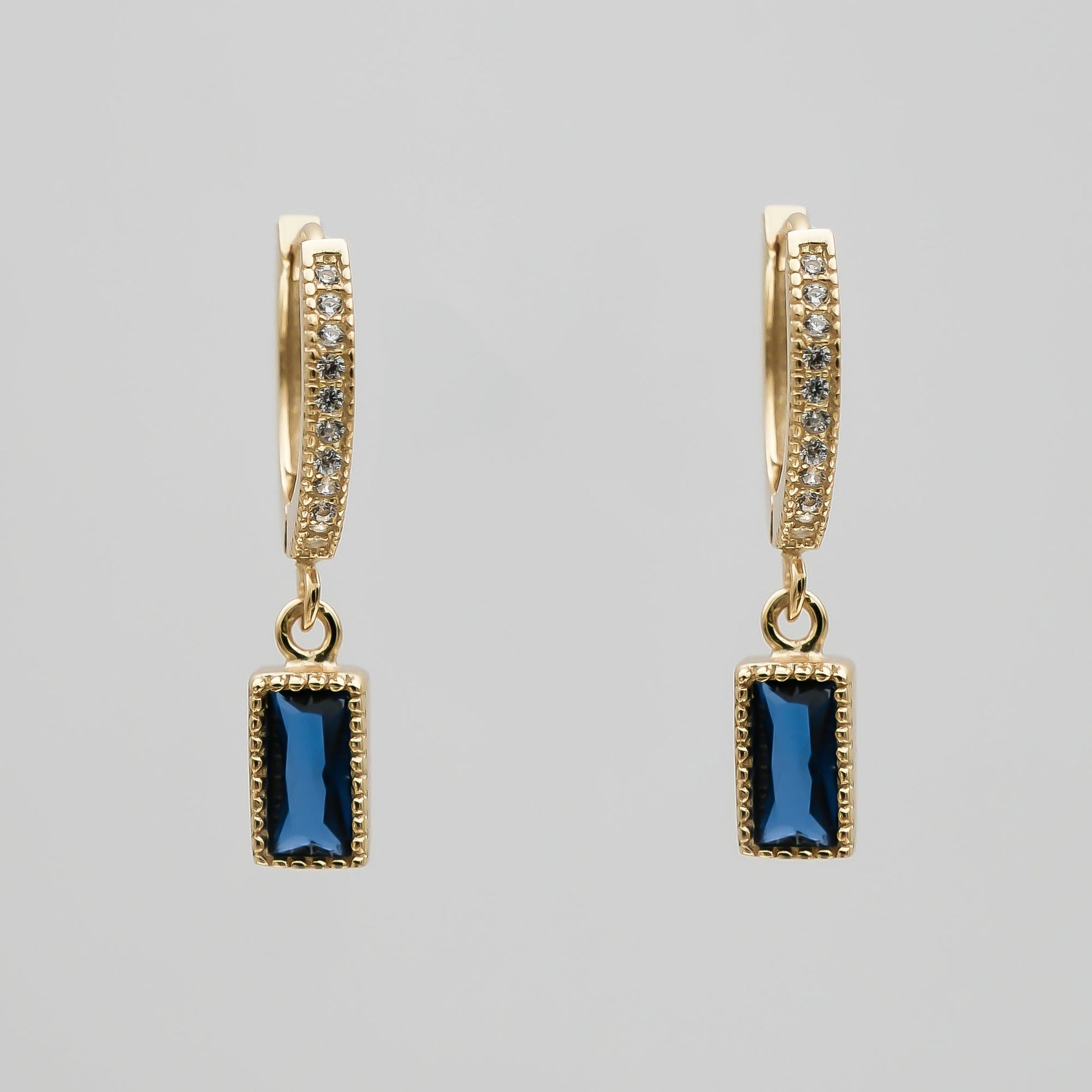 Add a pop of colour and sparkle to your jewellery collection with our Eliza Mini Drop Huggie Earrings. These elegant 18k gold-plated or silver plated huggies are adorned with shimmering pavé cubic zirconia stones, finished with a delicate blue rectangle drop charm for added movement and shine. Lightweight and secure, they’re perfect for everyday wear or layering with ear cuffs, studs, and your favourite PRYA necklace to complete a stylish, stacked look.