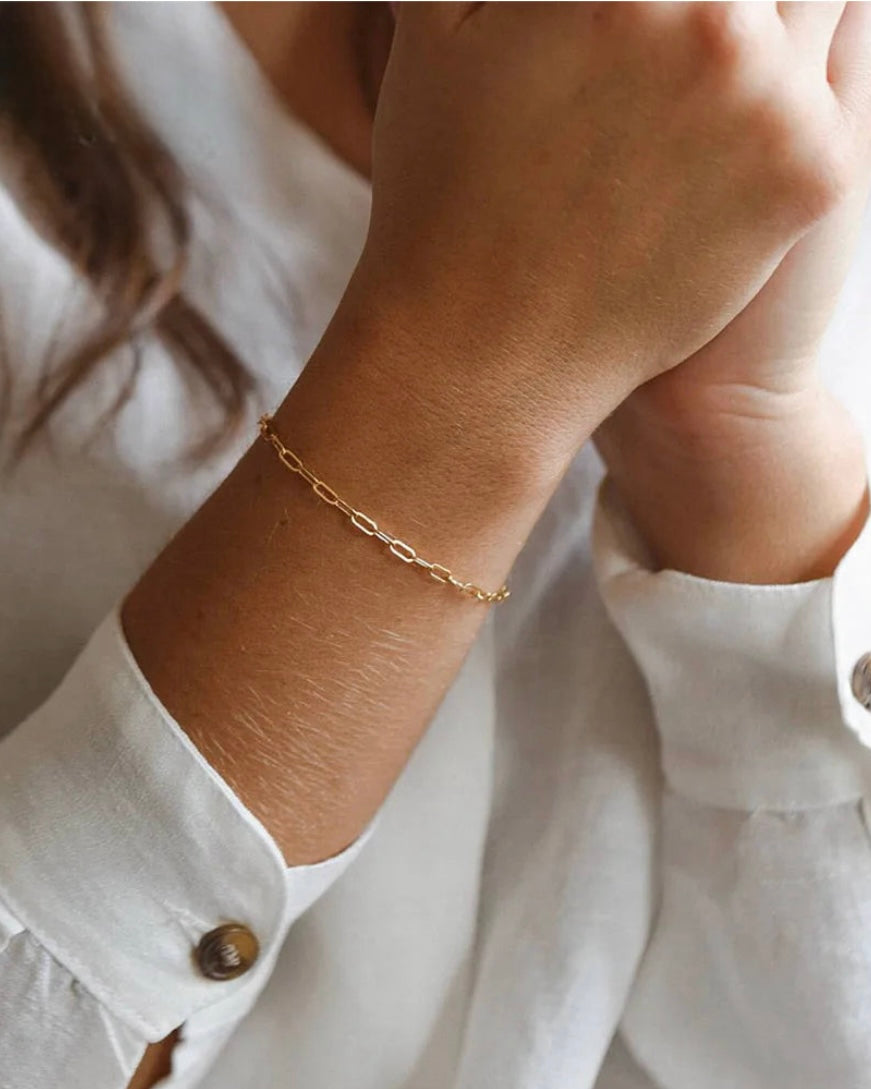A touch of sophistication wrapped in minimalist design. This fine link bracelet with premium finish is perfect for those who value timeless elegance and versatility. Made of high quality stainless steel, it maintains impeccable brightness and color over time.