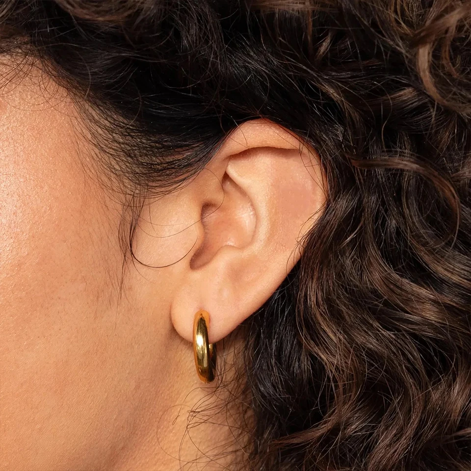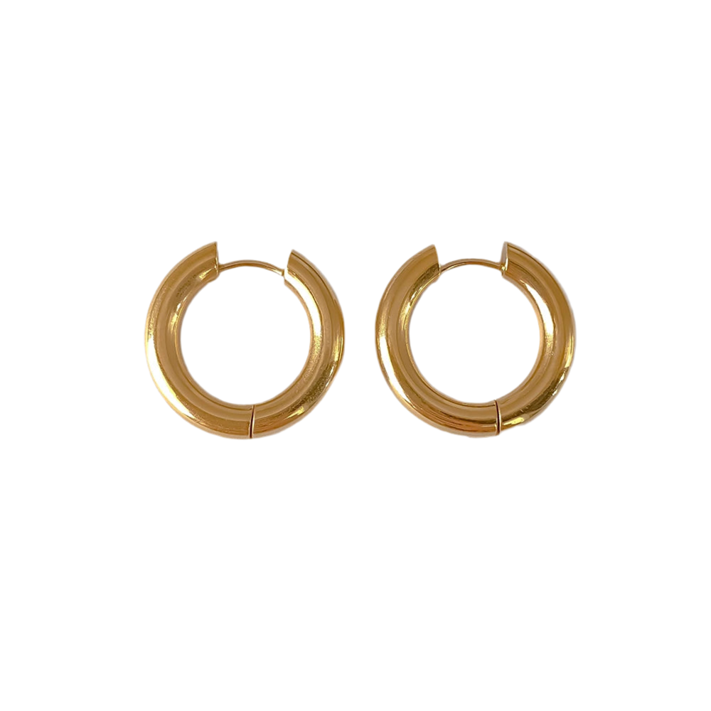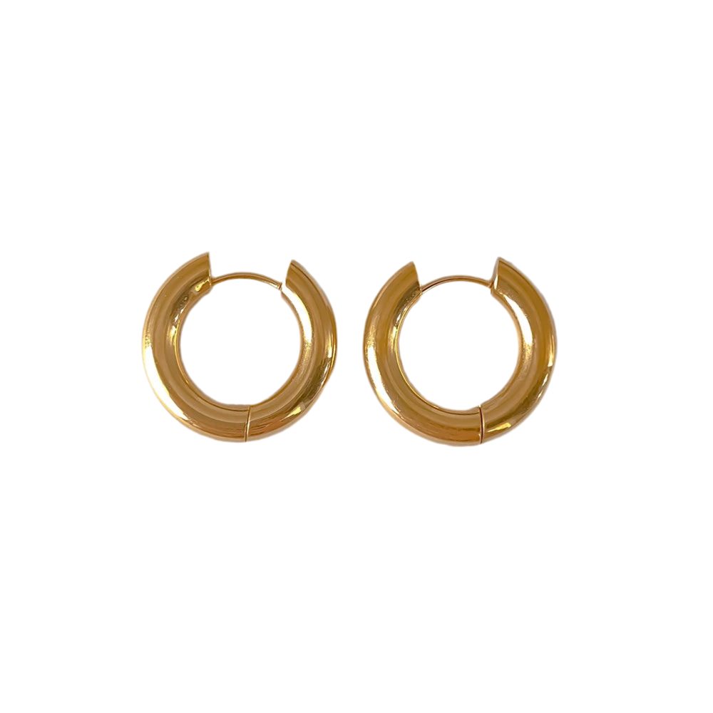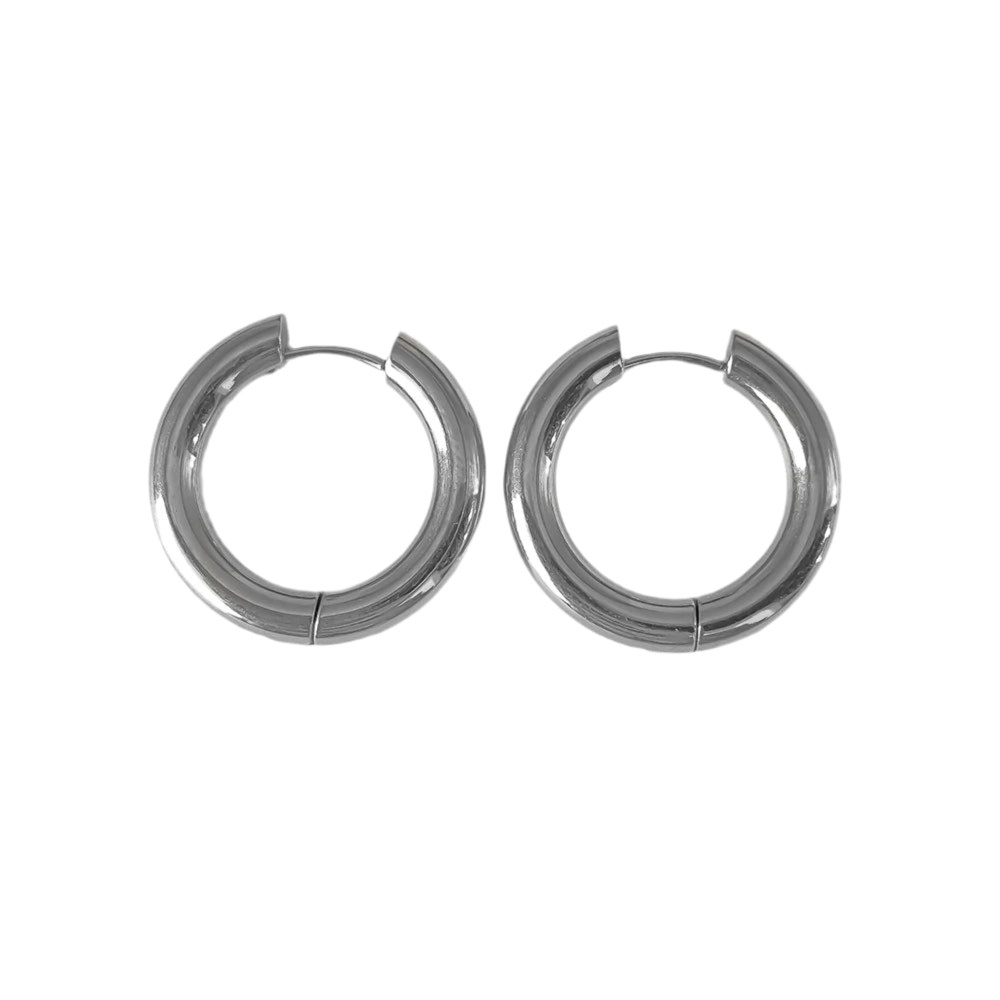 Discover the timeless sophistication of stainless steel hoop earrings, with a luxurious gold or silver finish. With an impactful and elegant design, these pieces combine boldness and class, perfect for those who want to stand out with style. Ideal to elevate everyday productions or compose party looks with personality. Resistant to water and time, they keep their impeccable shine for much longer. A modern touch with classic essence — indispensable in your collection.