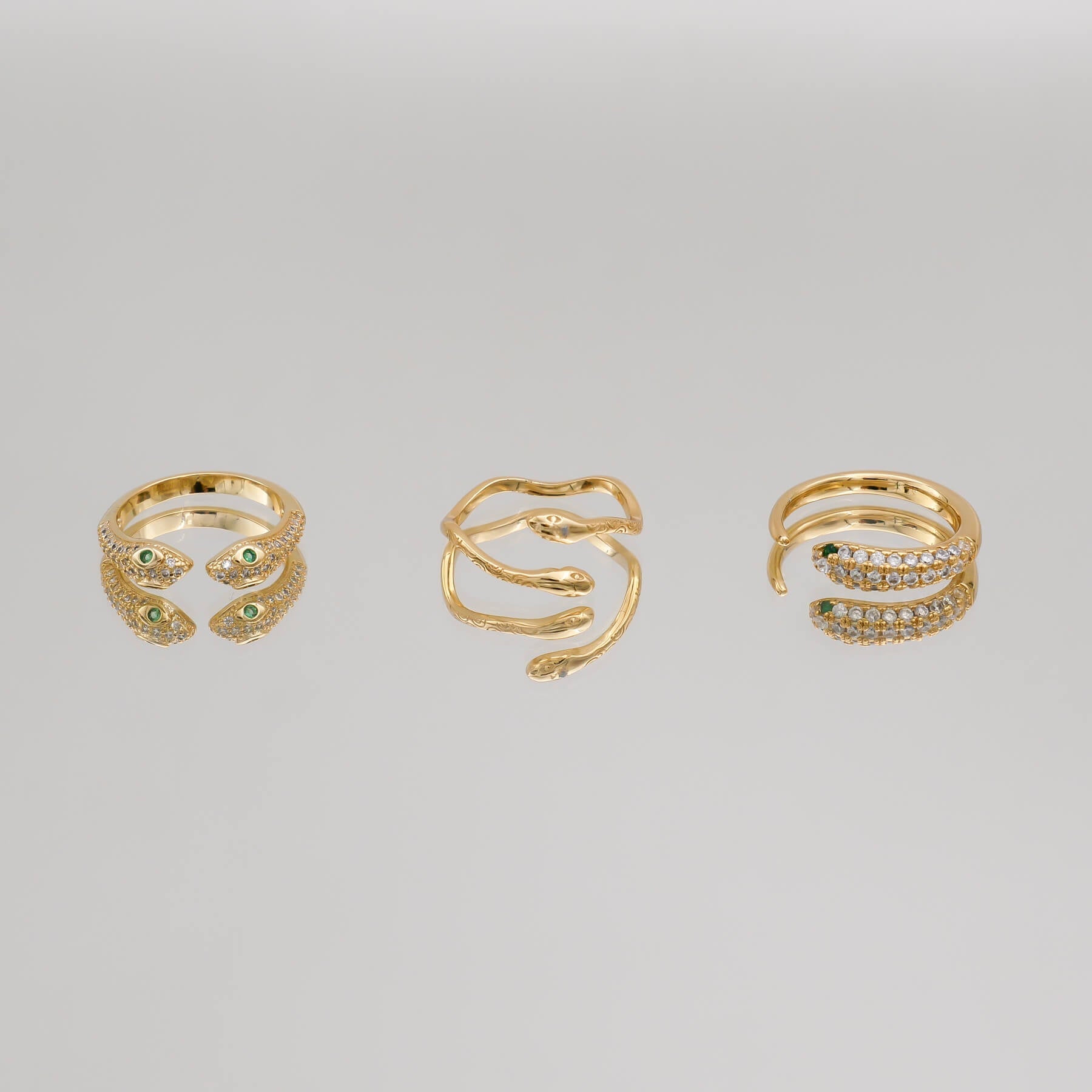 The Emmy Snake ring features intricate details, creating the perfect balance of sophisticated and stylish, this elegant ring features a carefully set series of stunning clear CZ stones. It's adjustable design allows you to wear the ring on any finger or stack with other rings and watch it glisten.
