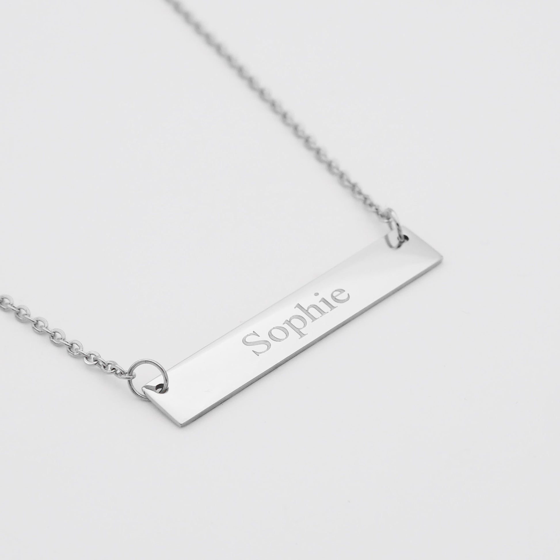 Elevate your style with our Engraved Custom Bar Necklace, a perfect blend of personalisation and elegance. Crafted from high-quality stainless steel and available in luxurious 18k Gold plating or sleek Silver plating, this custom necklace allows you to add a personal touch with your choice of engraving. Whether you choose a name, date, or special word, this custom bar necklace makes a meaningful accessory or thoughtful gift.