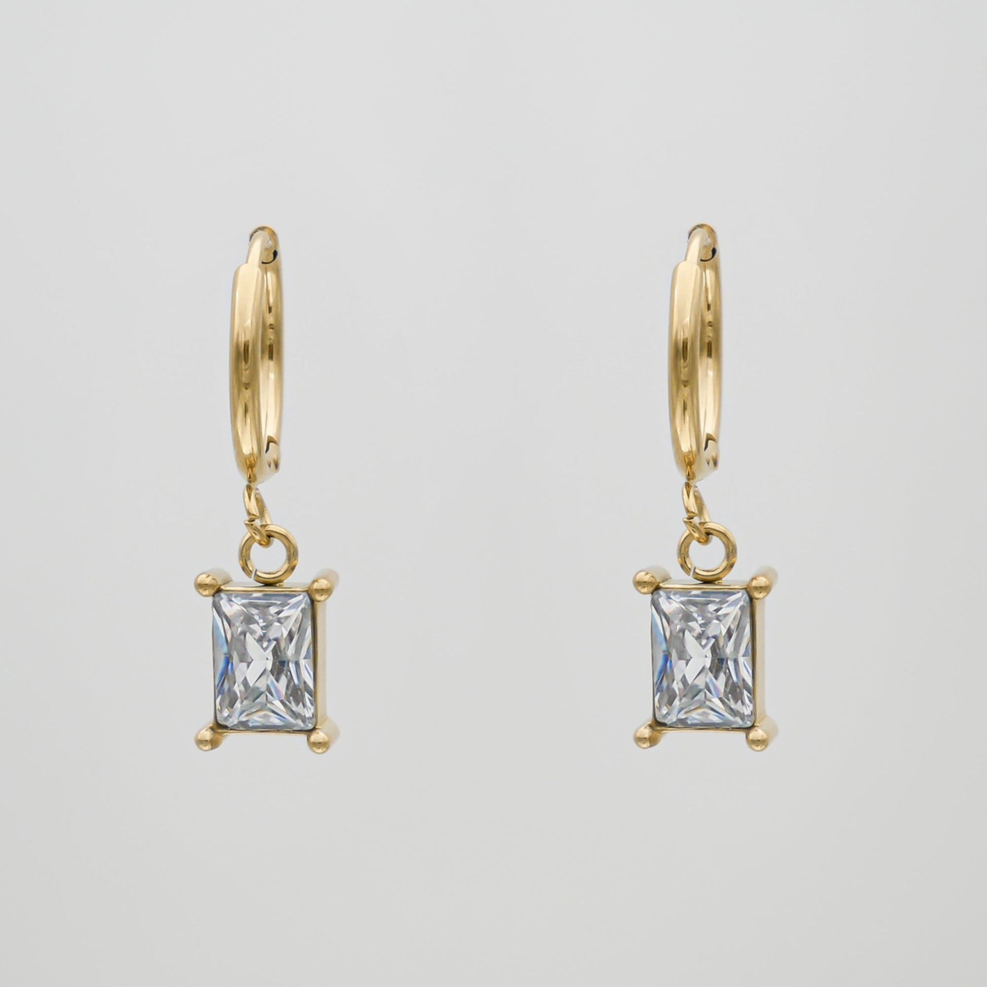 Elevate your ear collection to new heights. Vintage-inspired, sleek and subtle, the Erin earrings are designed to hug your earlobe. Designed with a cubic zirconia gem suspended from a delicate hoop. Match with our Erin Pendant Necklace.