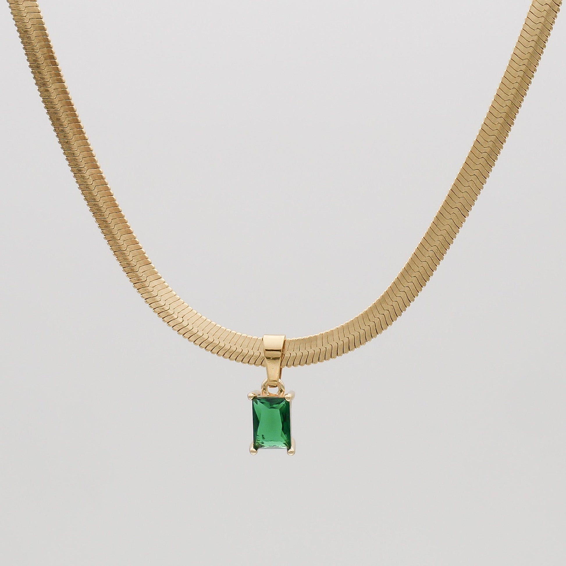 Elevate your necklace collection to new heights. Vintage-inspired, sleek and subtle, the Erin pendant necklace is designed to make you feel sophisticated. Designed with a stunning cubic zirconia gem suspended on a delicate herringbone chain. Match with our Erin Earrings.