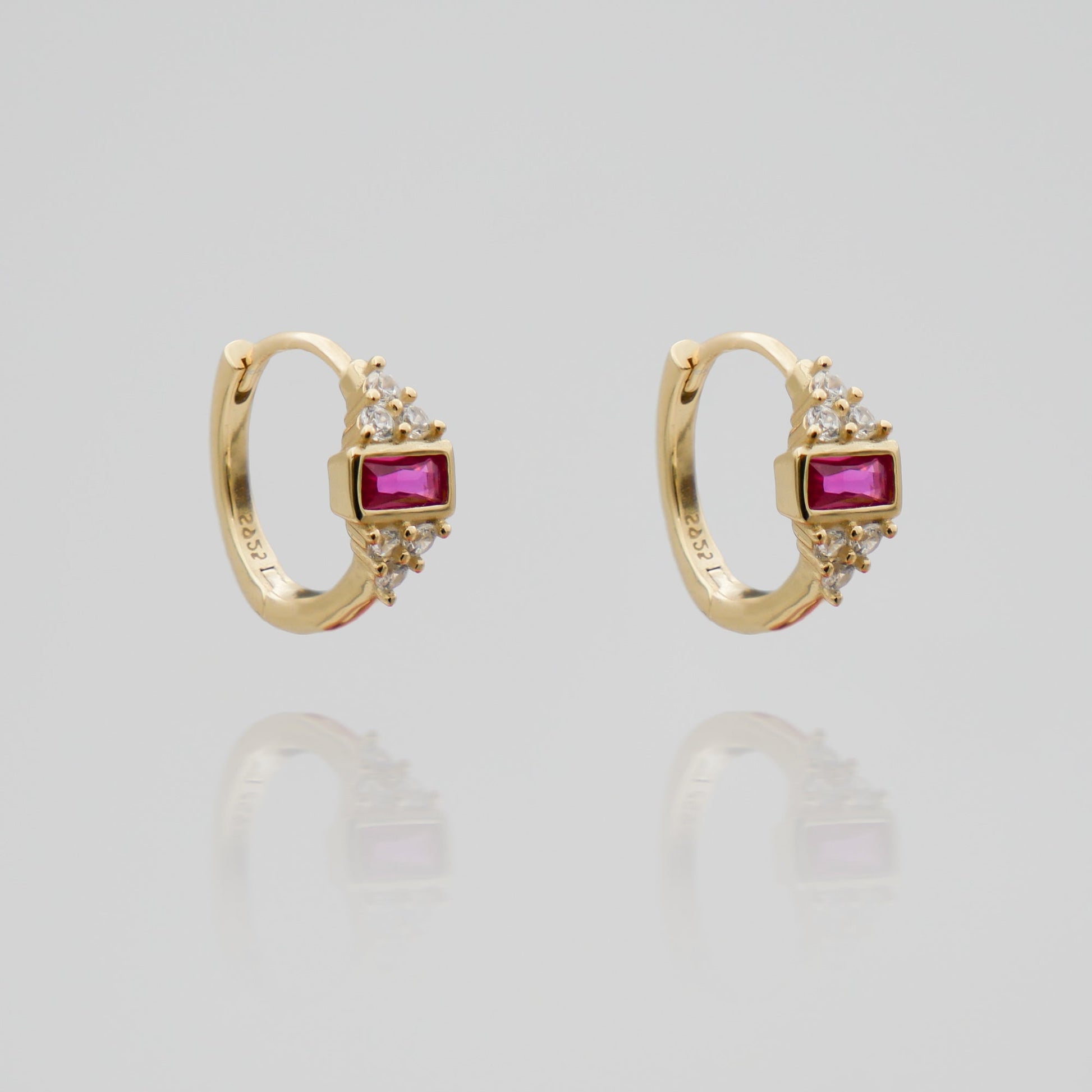 Eva Huggies are the perfect stylish companion for any look, featuring delicate dainty stones in ruby, sapphire, and emerald. Each earring is crafted with detail, adding a touch of class to your wardrobe.