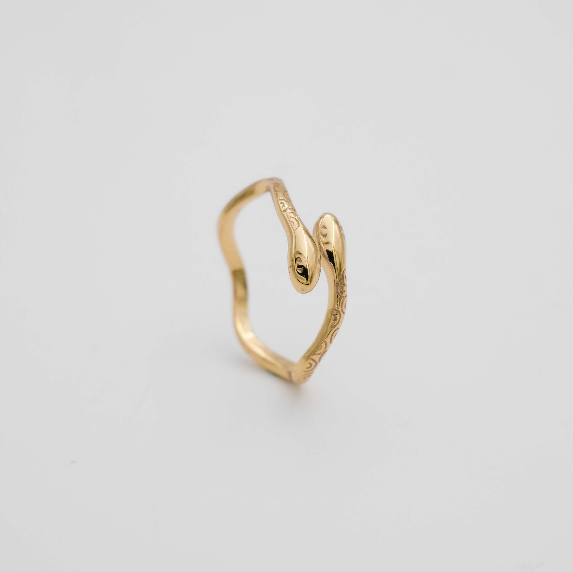 This elegant Eve Snake ring features intricate details, creating the perfect balance of sophistication and style. It's adjustable design allows you to wear the ring on any finger or stack with other rings and watch it glisten.