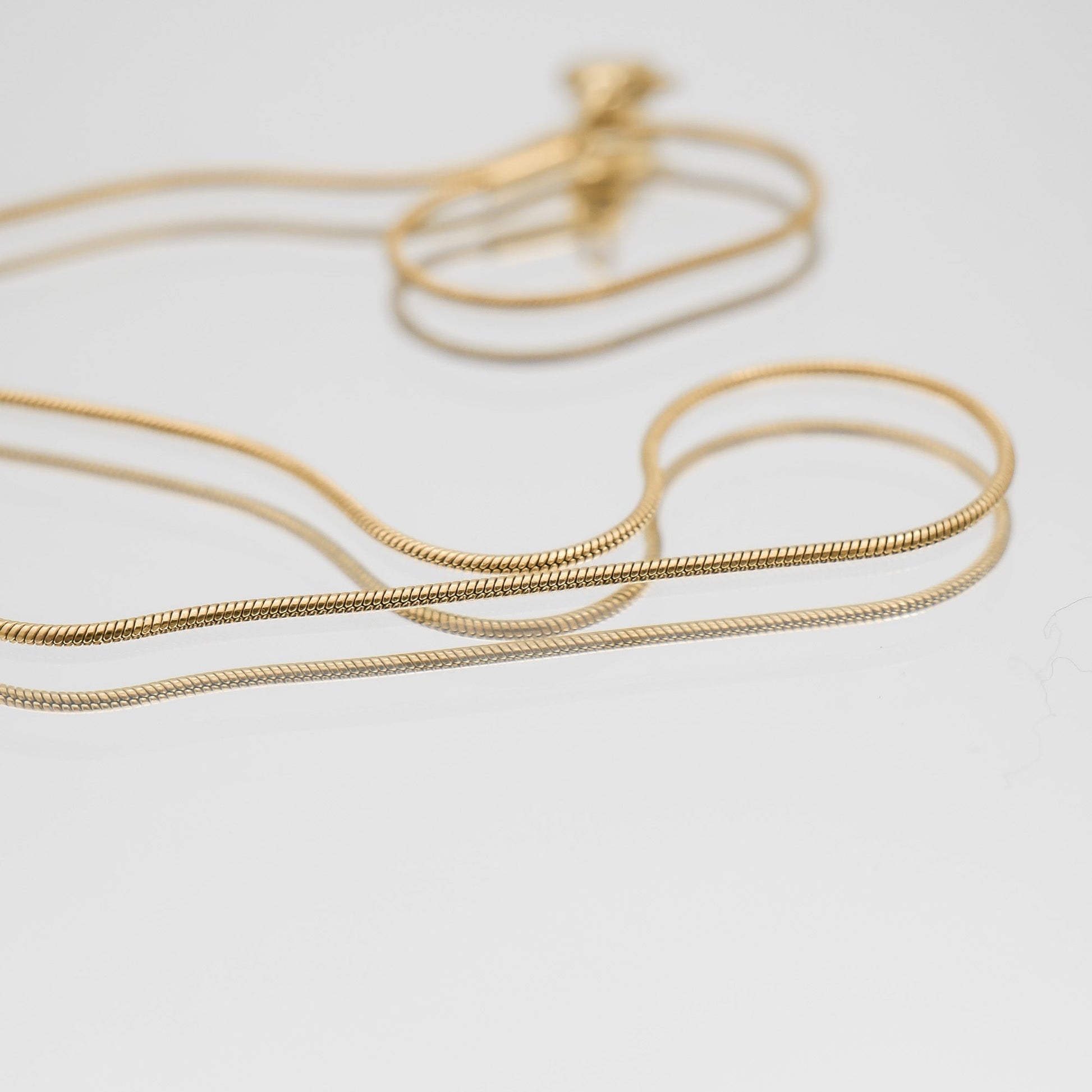 Our fine Snake Chain adds an elegant touch to any look. Crafted from 18k gold plated stainless steel it is perfect for adding a subtle touch or for layering with other necklaces and chains. Also Available In SILVER.