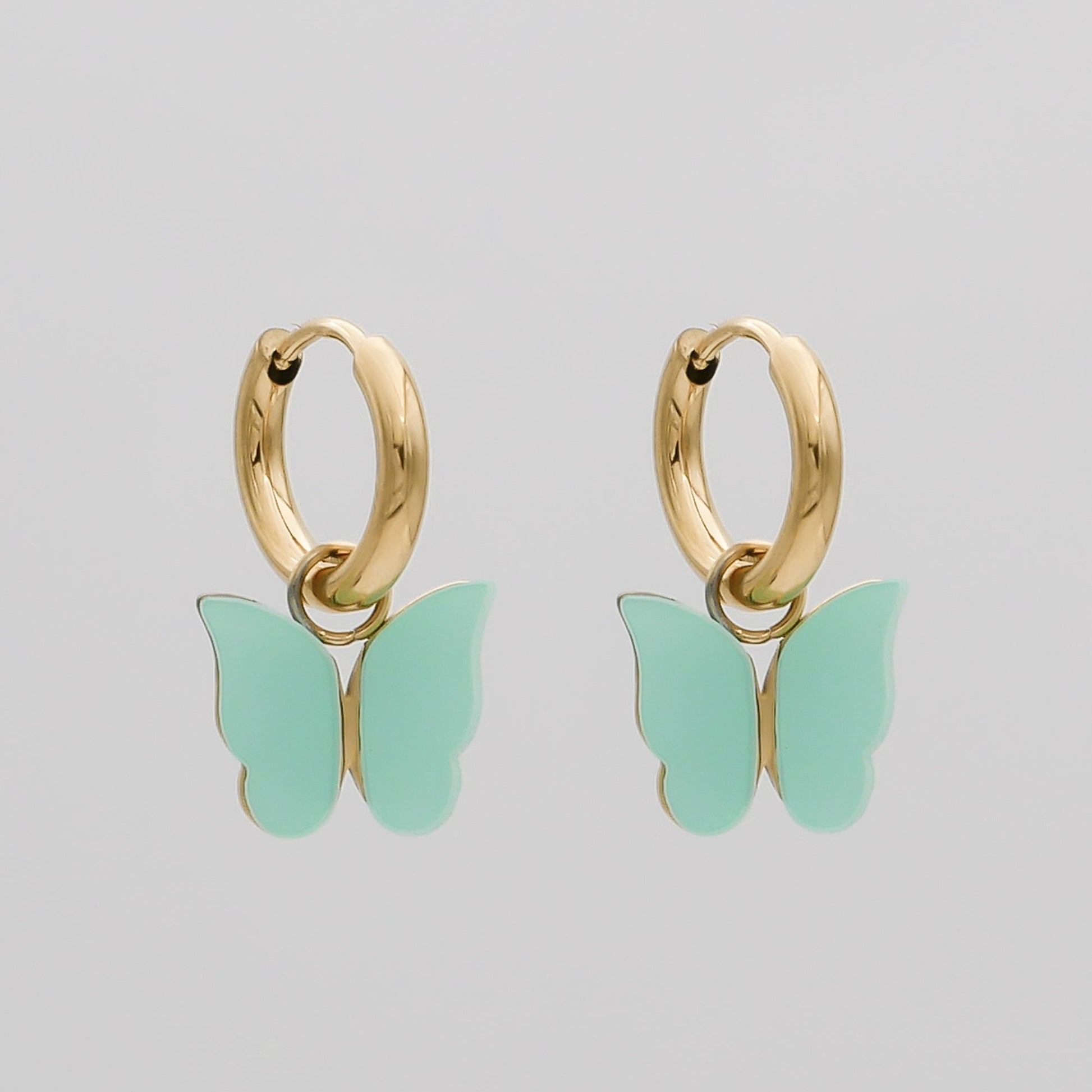 Our Butterfly Huggies are the perfect mix between classy and cute. A small hoop earring featuring a butterfly charm in your chosen colour, they can be worn everywhere.