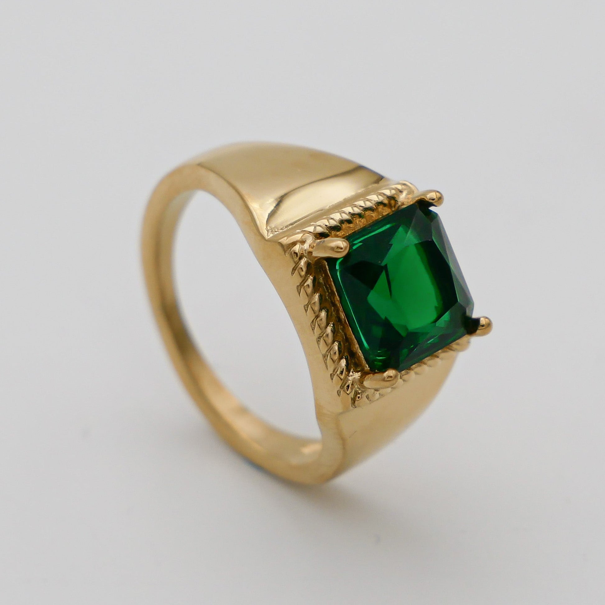 The stunning square-shaped, imitation stones have a beautiful shape and each colour provides its own style. The blackened onyx has a deep, almost opaque colour. It has a slight shimmer, but its blackness draws you in. The Clear quartz gem is all about sparkle and that added bit of glam to the everyday. The rose option has an elegant, vintage appeal with its subdued but natural colouring. Or, if you’re green with envy thinking of someone else having this ring, the emerald gemstone is the perfect fit for you.