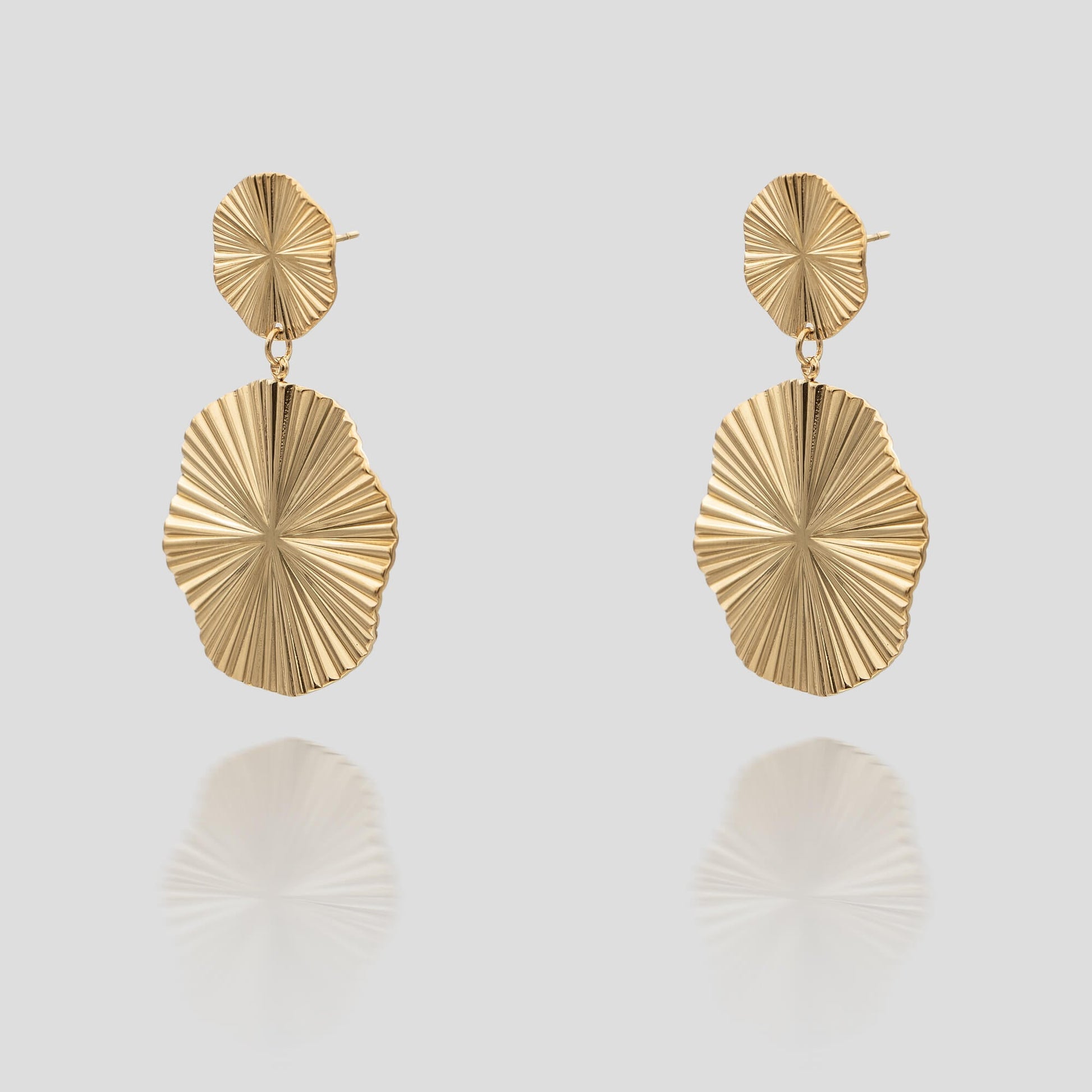 Inspired by ancient Mayan culture, the Hina Gold Drop Earrings are a stunning tribute to timeless beauty and harmony. These symbolic drop earrings feature a radiant design that is reminiscent of the sun. Carry the essence of the ancient world with you to your everyday look with these striking gold earrings.