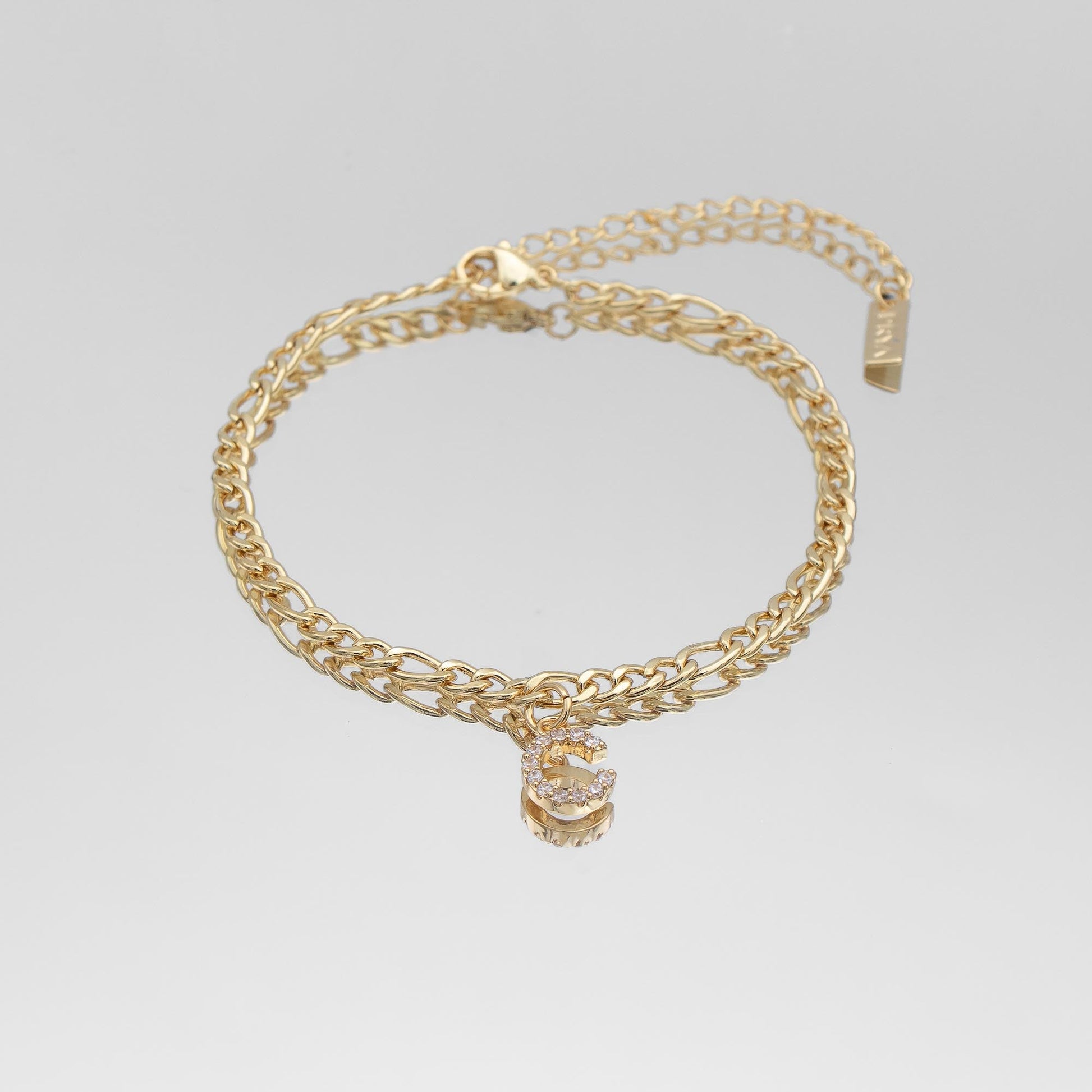 Our ICY initial anklet is an awesome addition to your style. The anklet features an initial letter in your selection, created from either an 18K gold plate or silver-plated stainless steel and bejewelled with sparkling cubic zirconia. A sparkly piece to add some shine.