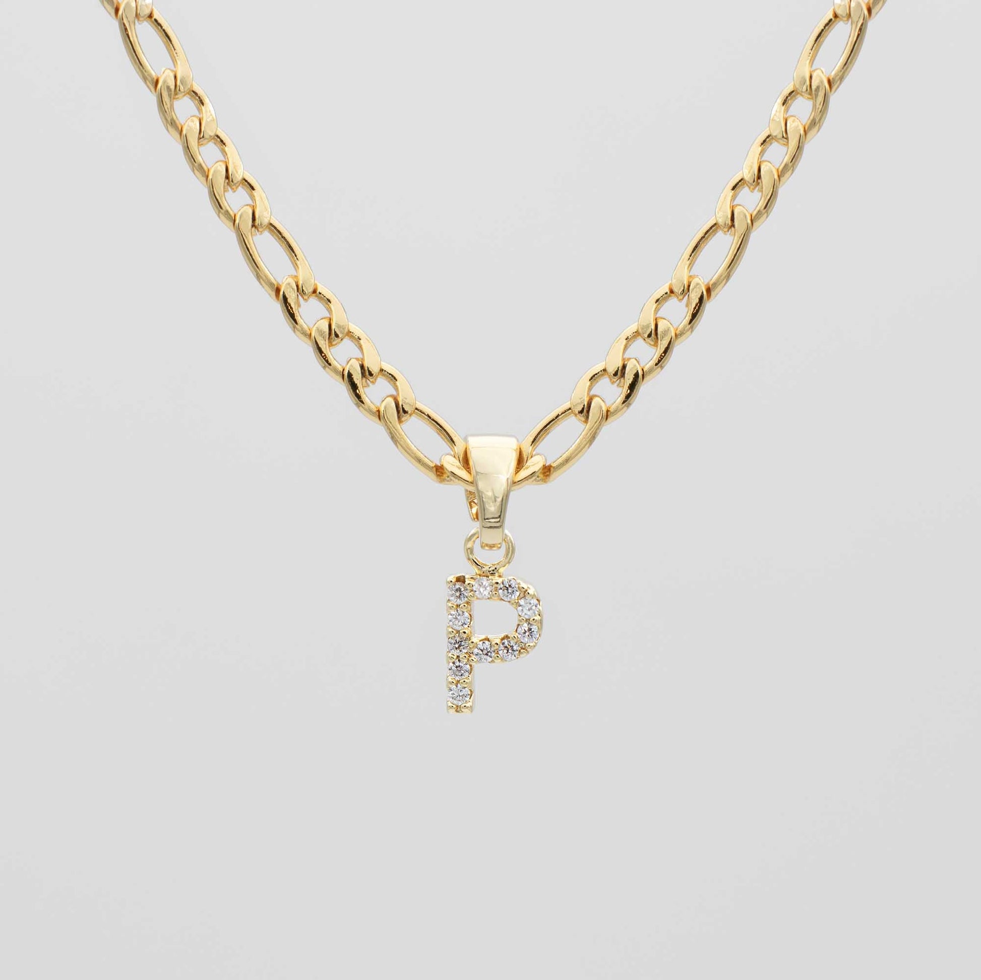 Personalise your look with our Beautiful ICY Initial Necklace. A CZ Stone incrusted letter suspended on a beautifully crafted Figaro Link chain. Available in 18k gold, or silver plated.