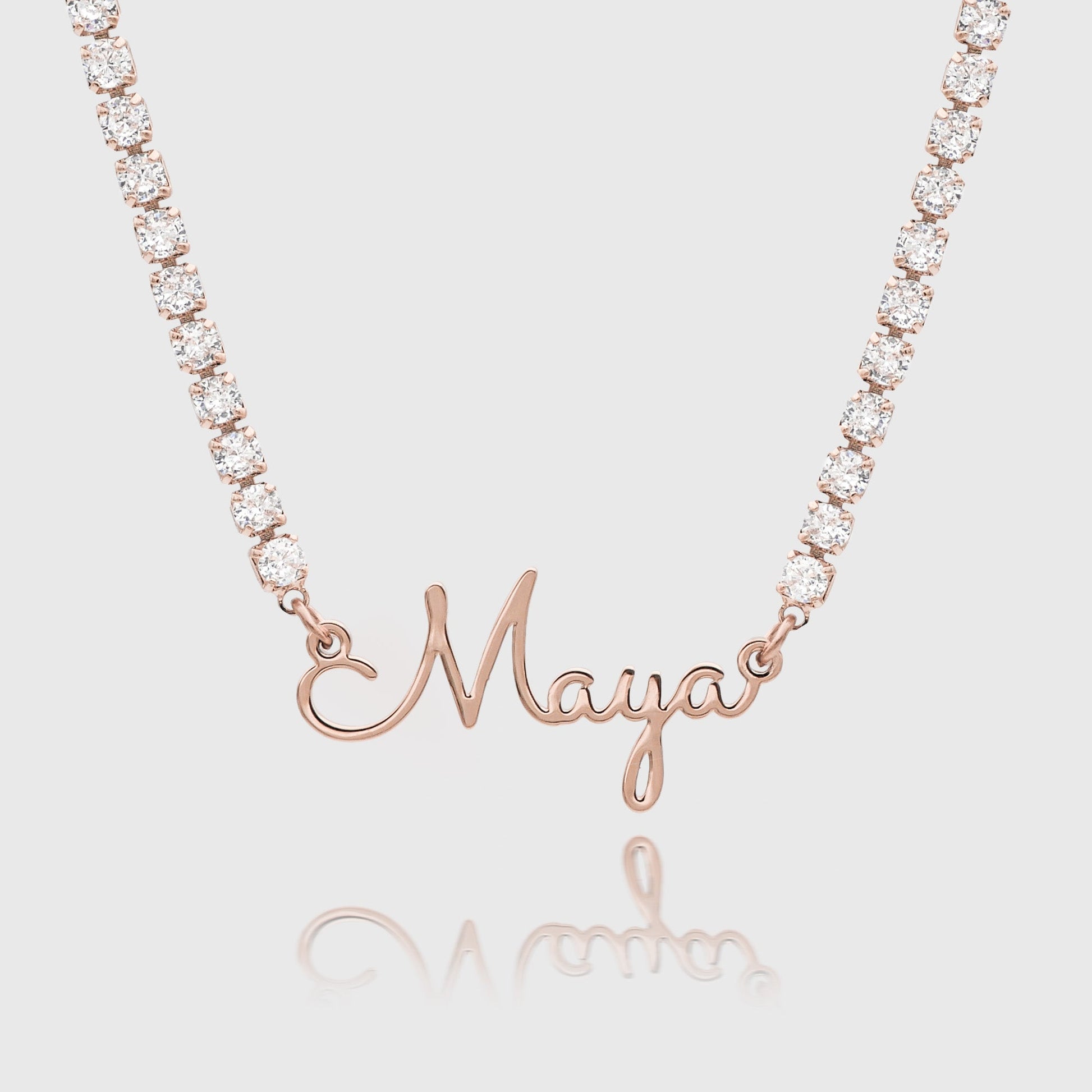 Make it personal with our ICY London Name Necklace – a sparkling standout in our custom name necklace collection. Featuring elegant London script on a pave tennis chain, this personalised piece adds luxe style to any look. Crafted with care and perfect for names or special words. Also available in alternate chains HERE!