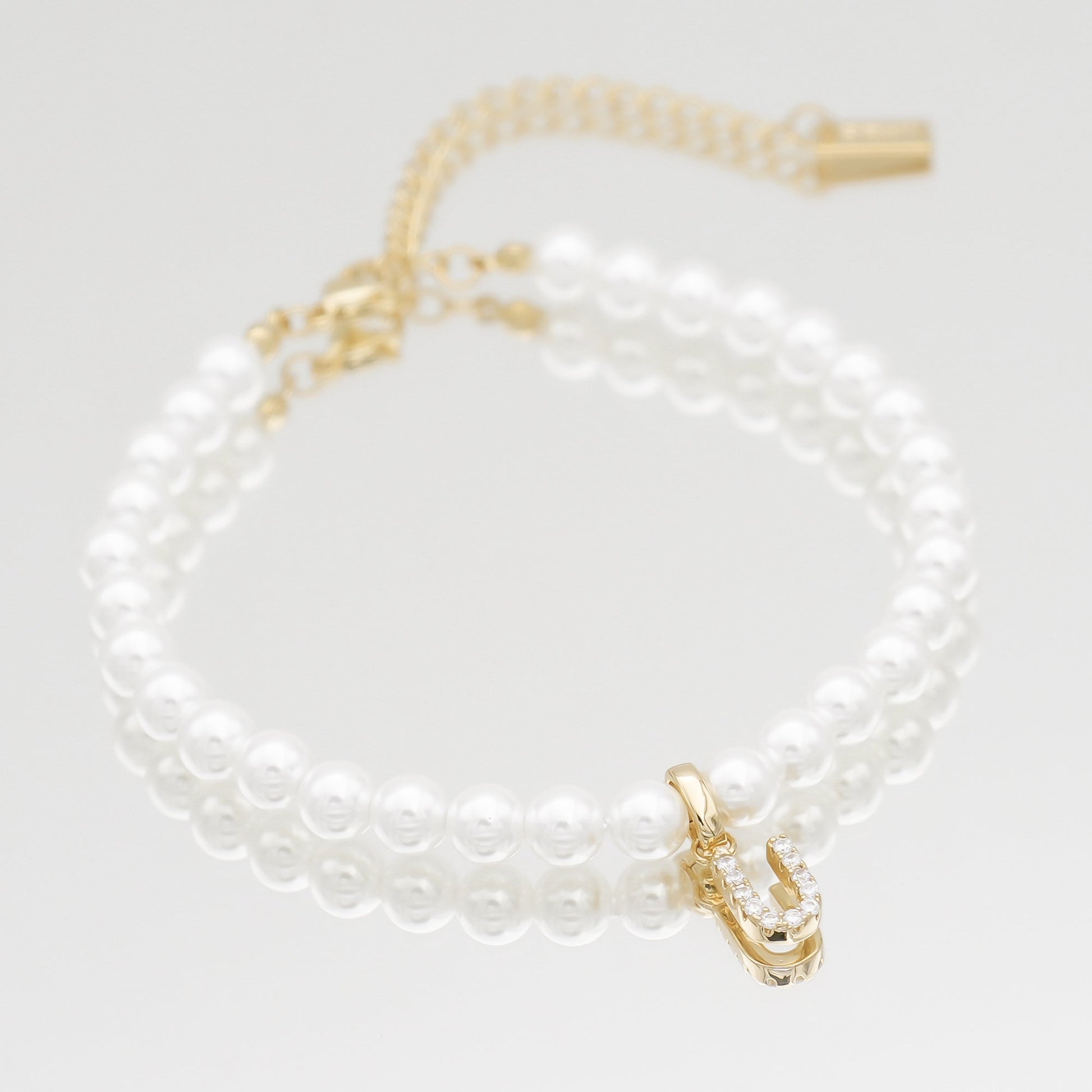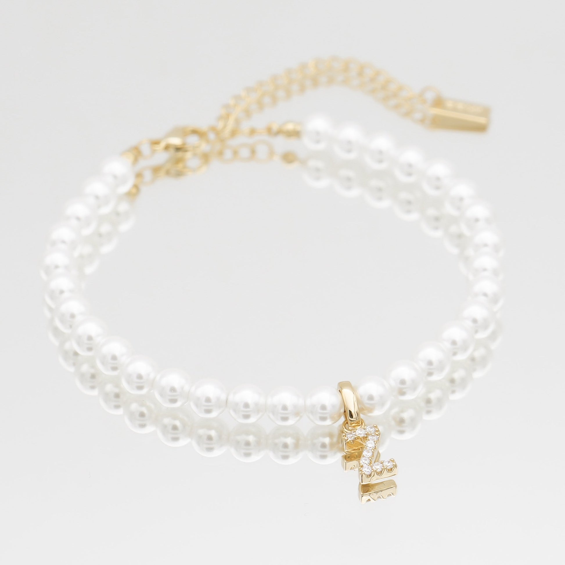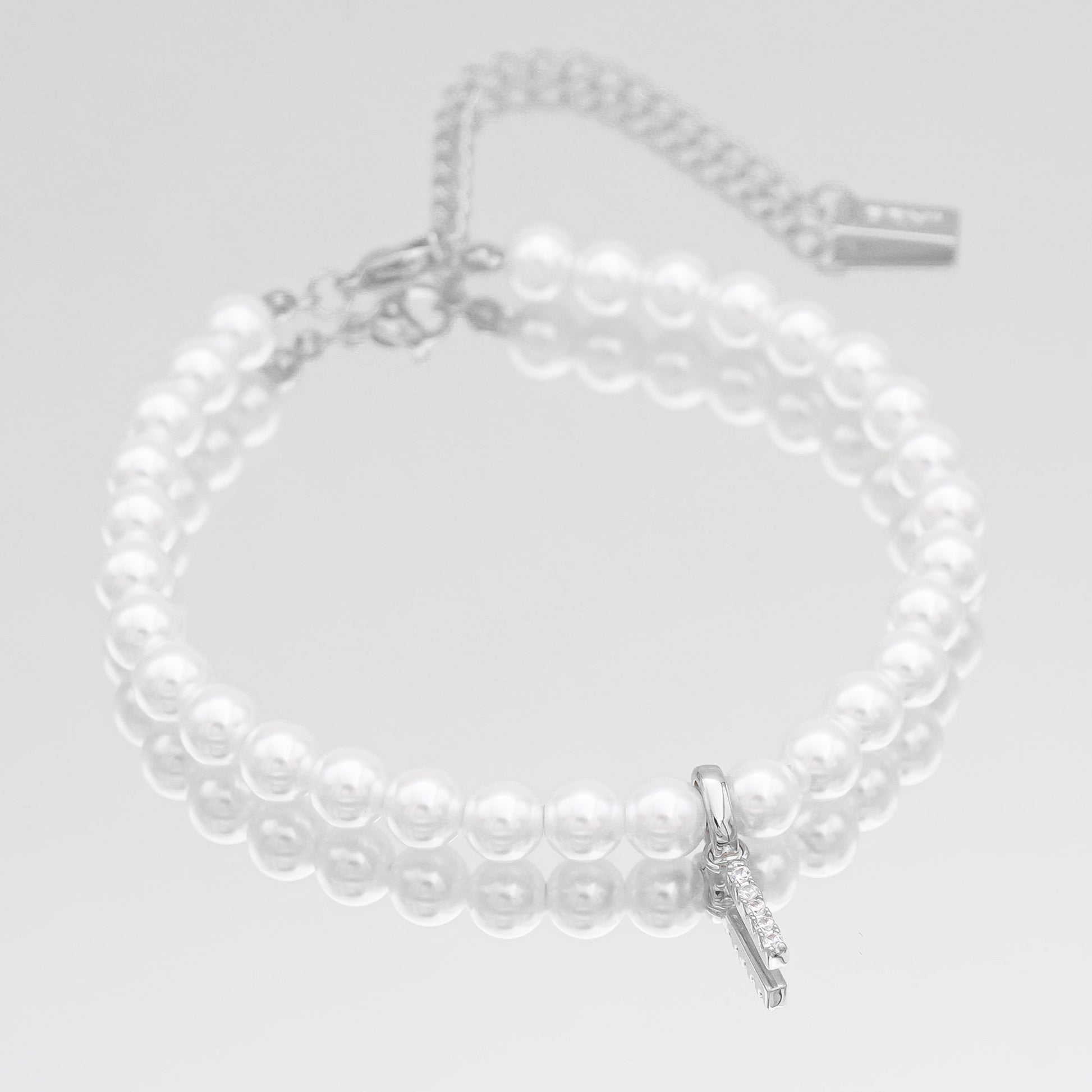 Our Icy Pearl Initial Bracelets feature a beautifully pavé Initial hung on our stunning pearl chain bracelet. This elegant piece is sure to create an eye-catching look. Match with our Pearl initial Necklace & Anklet to complete the ultimate pearl collection look.