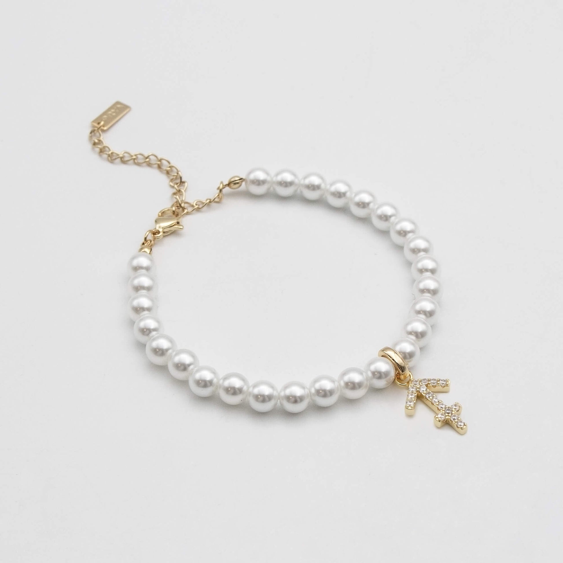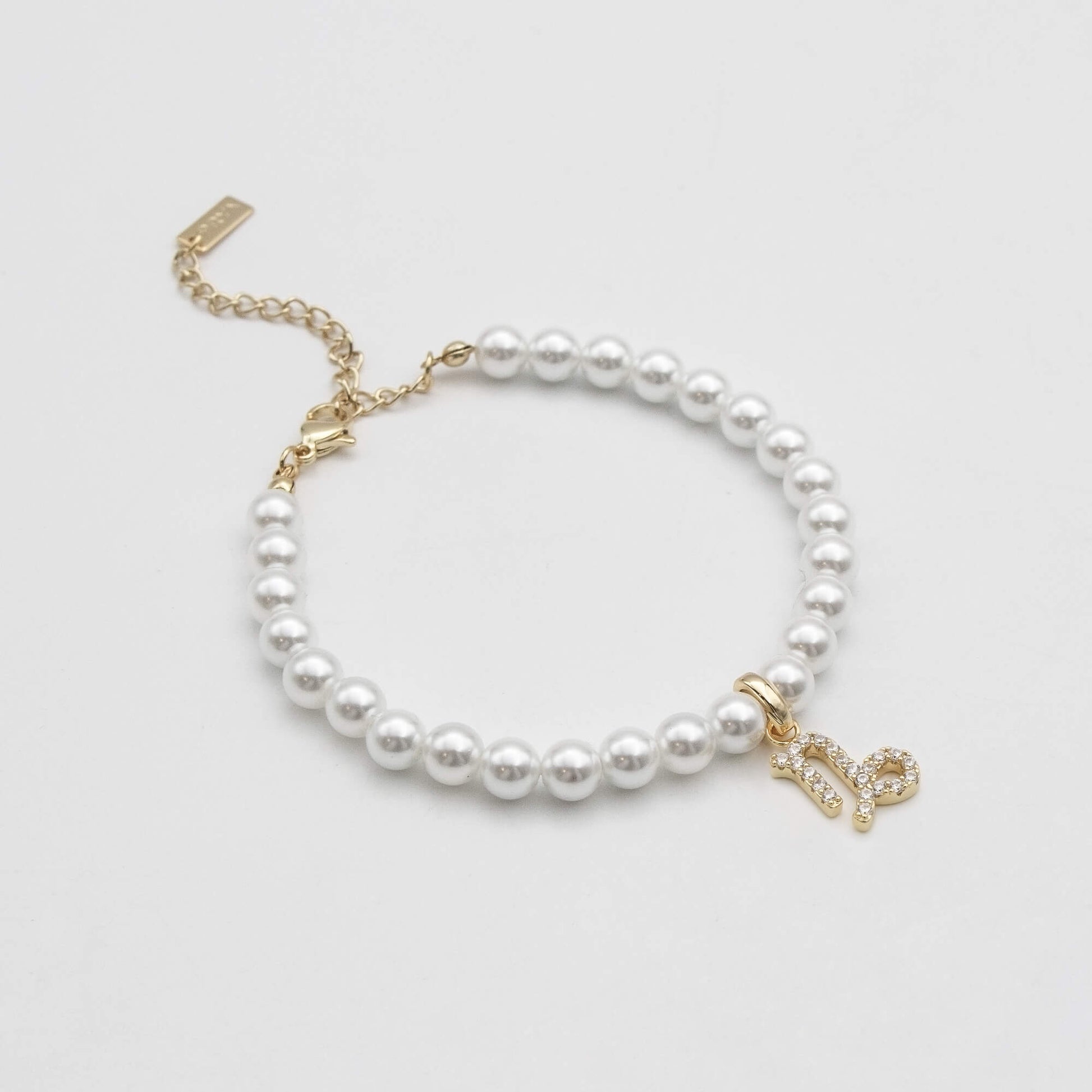 This gorgeous bracelet boasts a customized zodiac sign charm adorned with sparkling cubic zirconia crystals, resting on a string of lustrous pearls. It's a fashionable expression of your unique personality and passion for astrology. This adaptable bracelet can elevate any ensemble and serves as a heartfelt present for a loved one.