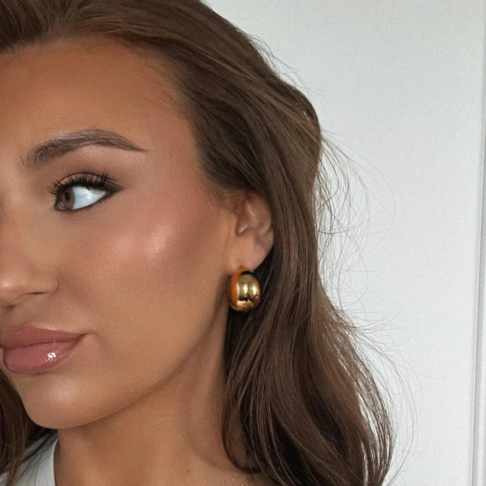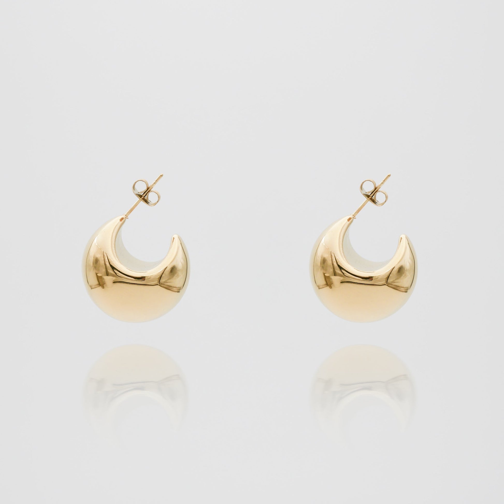 Elevate your everyday look with our Imani Earrings, featuring a bold, moon-shaped dome design in a chunky half hoop silhouette. Crafted in a radiant gold-plated finish, these earrings strike the ideal balance between statement and subtlety, making them a versatile staple for any jewellery collection. Their sculptural shape offers a modern edge to a classic design—perfect for pairing with everything.