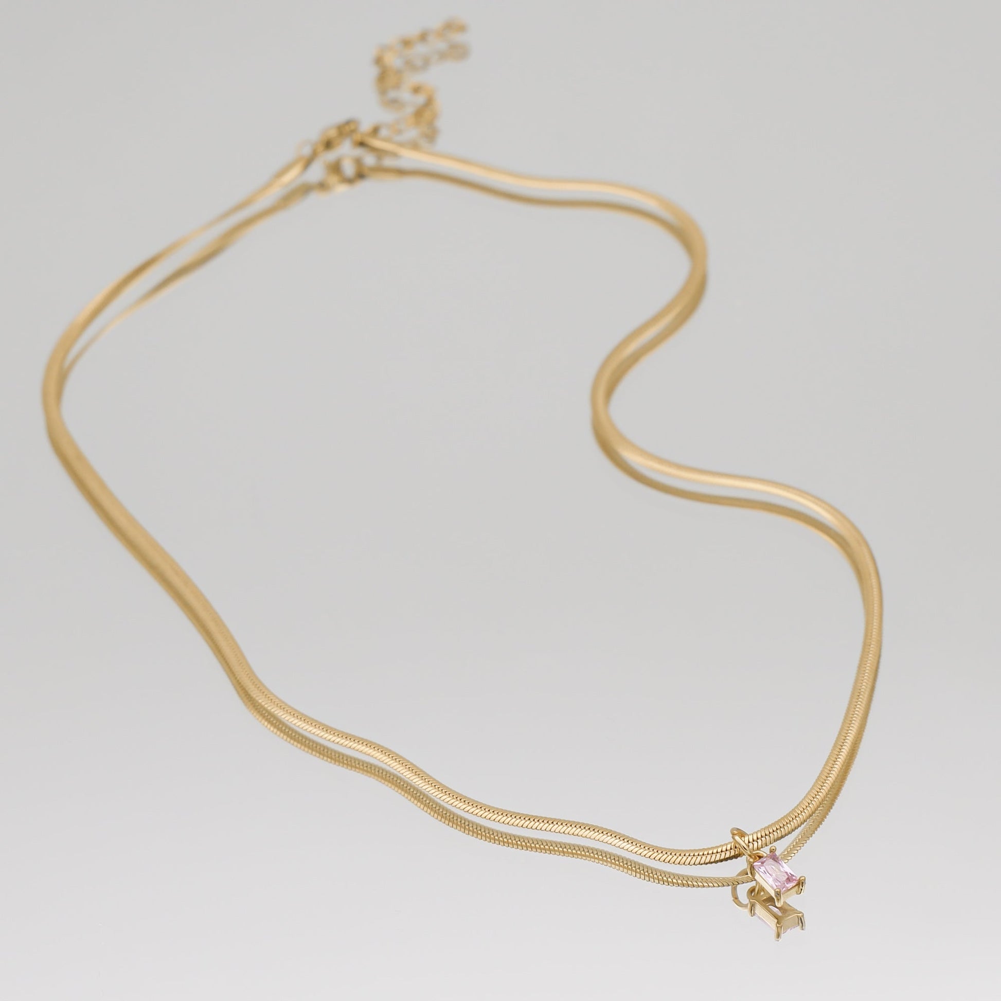 Elevate your necklace collection to new heights. Vintage-inspired, sleek and subtle, the Imani pendant necklace is designed to make you feel sophisticated. Designed with a stunning cubic zirconia gem suspended on a delicate herringbone chain.