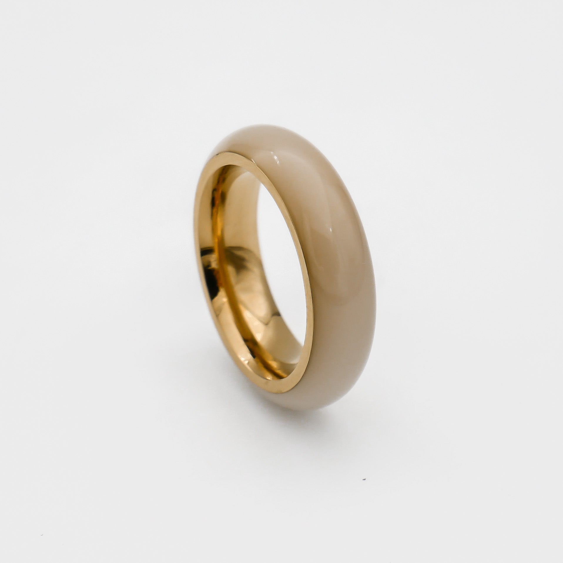 This classic band style ring features opal & Jade imitation stones with a seamless band finish, supported by gloss finished 18k gold band structure. A great casual individual ring for everyday wear, or layered with a selection of other PRYA rings.