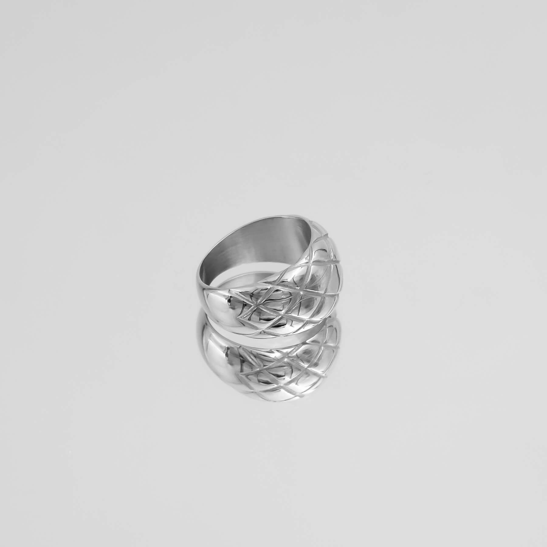 The Kara dome ring is an extraordinary design that will flatter any outfit. Featuring a detailed quilted design, wear this beautiful ring alone for everyday wear or dress up and pair with our various style dome rings.