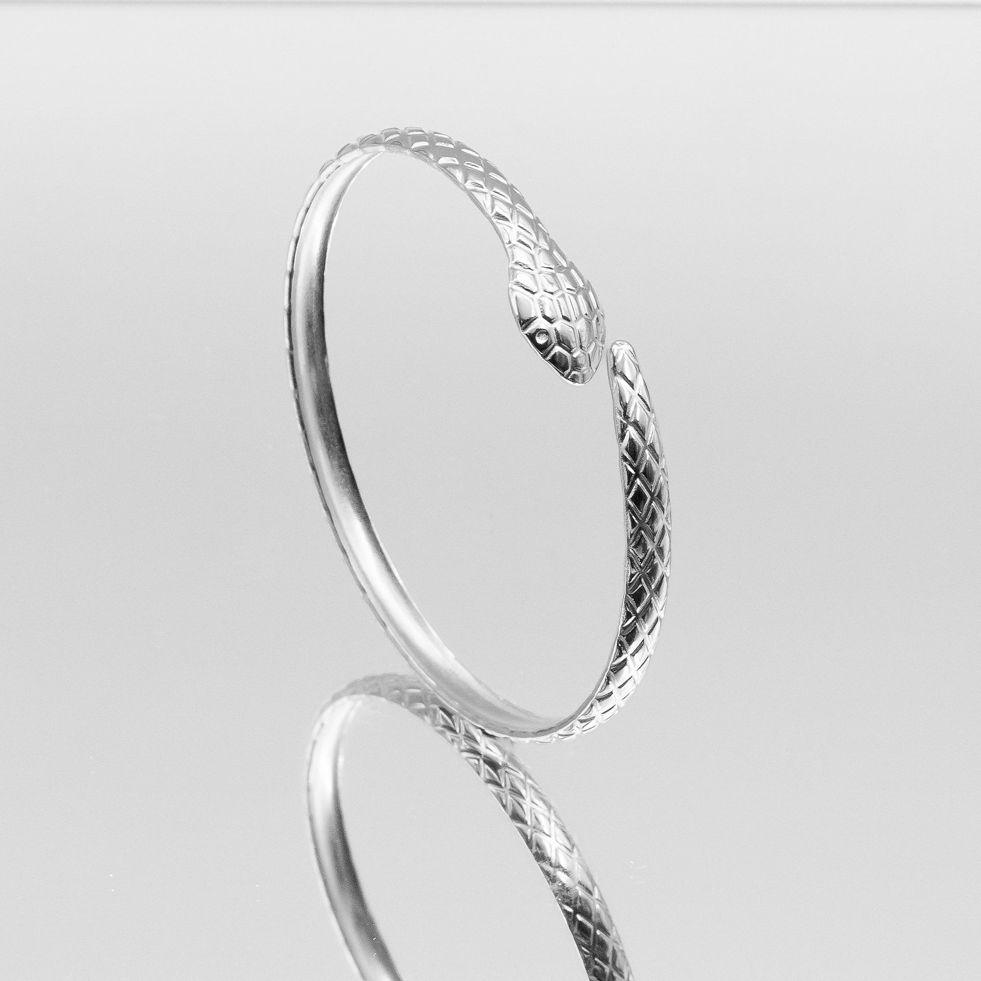 Bold and elegant, the Kia Snake Bangle is a gold or silver bracelet inspired by the serpent, a timeless symbol of transformation, power, and renewal. This adjustable bangle blends contemporary style with symbolic meaning, perfect for women who love statement jewellery.