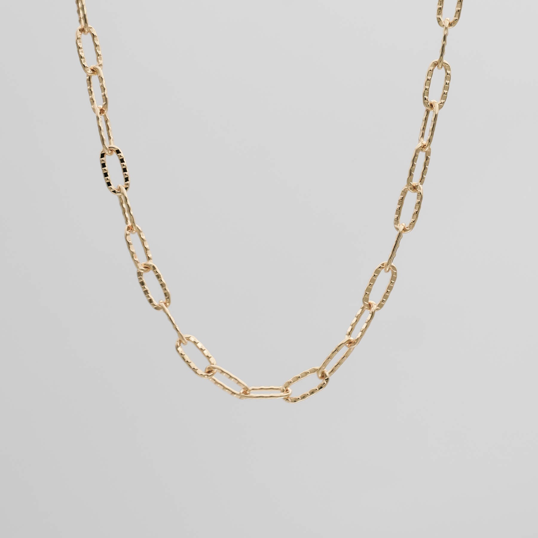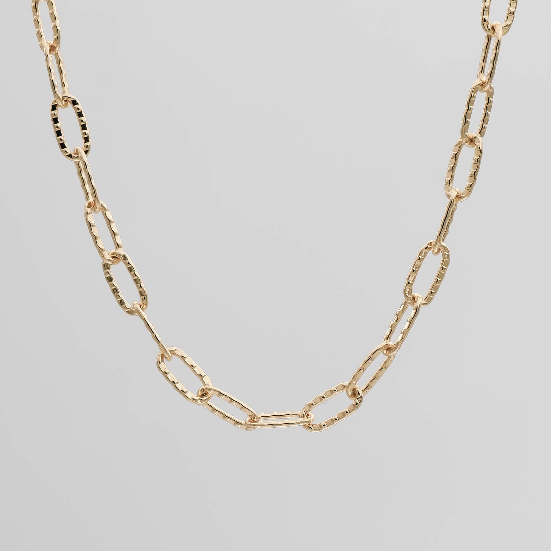 This beautiful Kira link necklace is an effortless piece, featuring a detailed, textured paperclip link design seldom to find elsewhere. This beautiful necklace adds a feminine essence and works perfectly, solo or layer with other necklaces for a mesmerising look that no one can resist admiring.