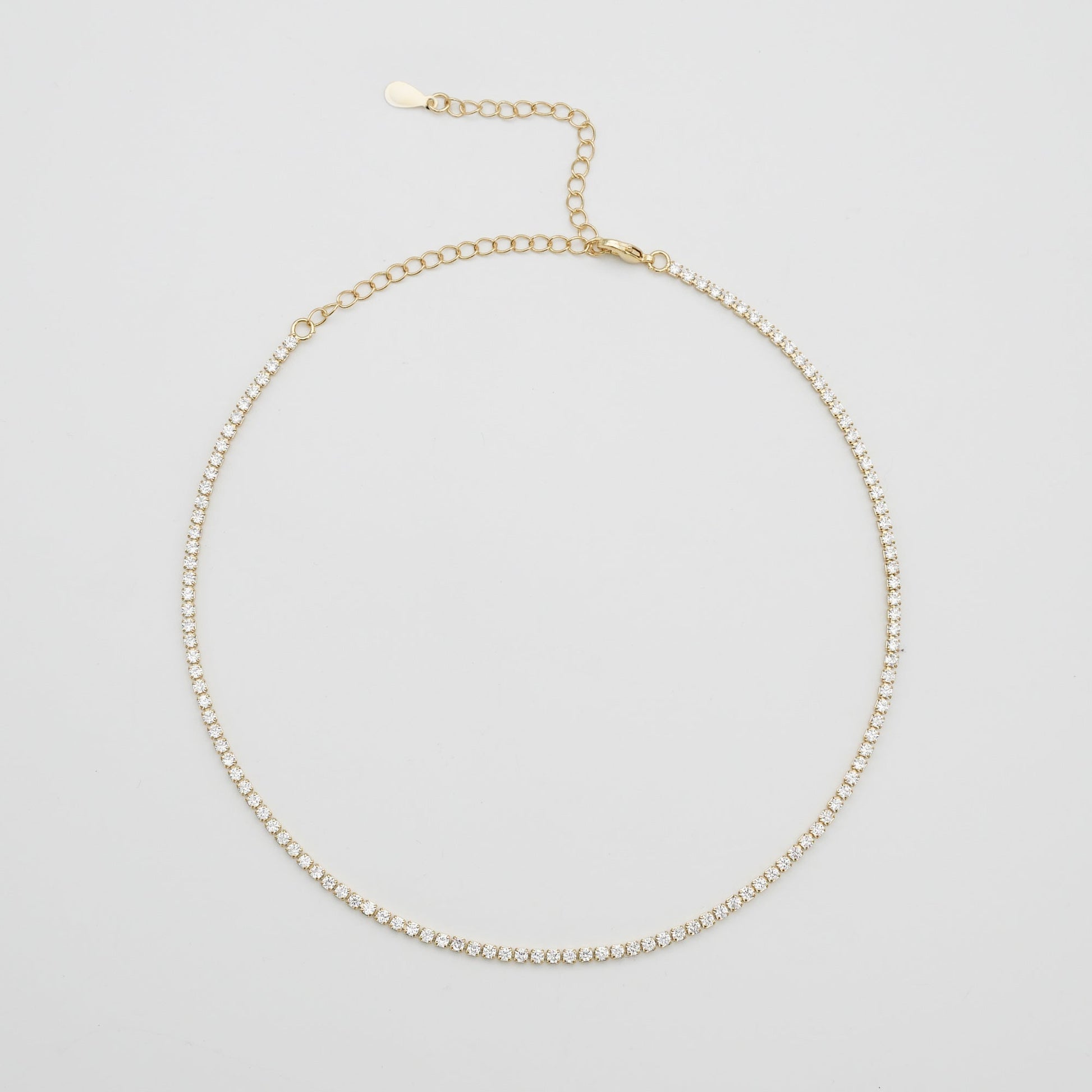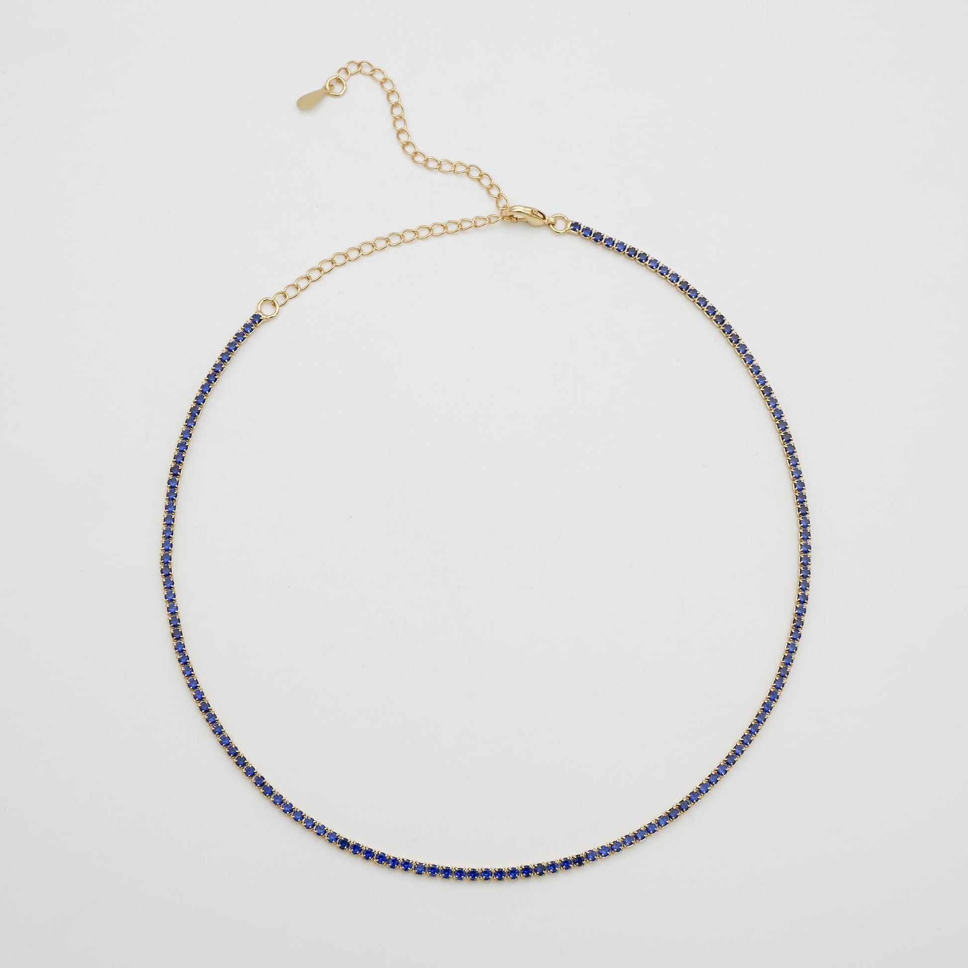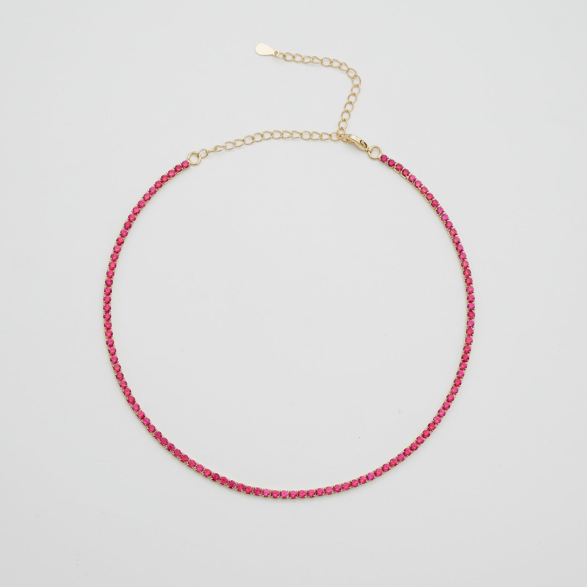The Kylie Tennis Necklace features a timeless tennis chain design. Choose from Ruby, Clear, Emerald and Sapphire stones. The necklace is expertly-crafted for a luxurious, high-end look and feel. Wear it to a special occasion or add a touch of elegance to any outfit.