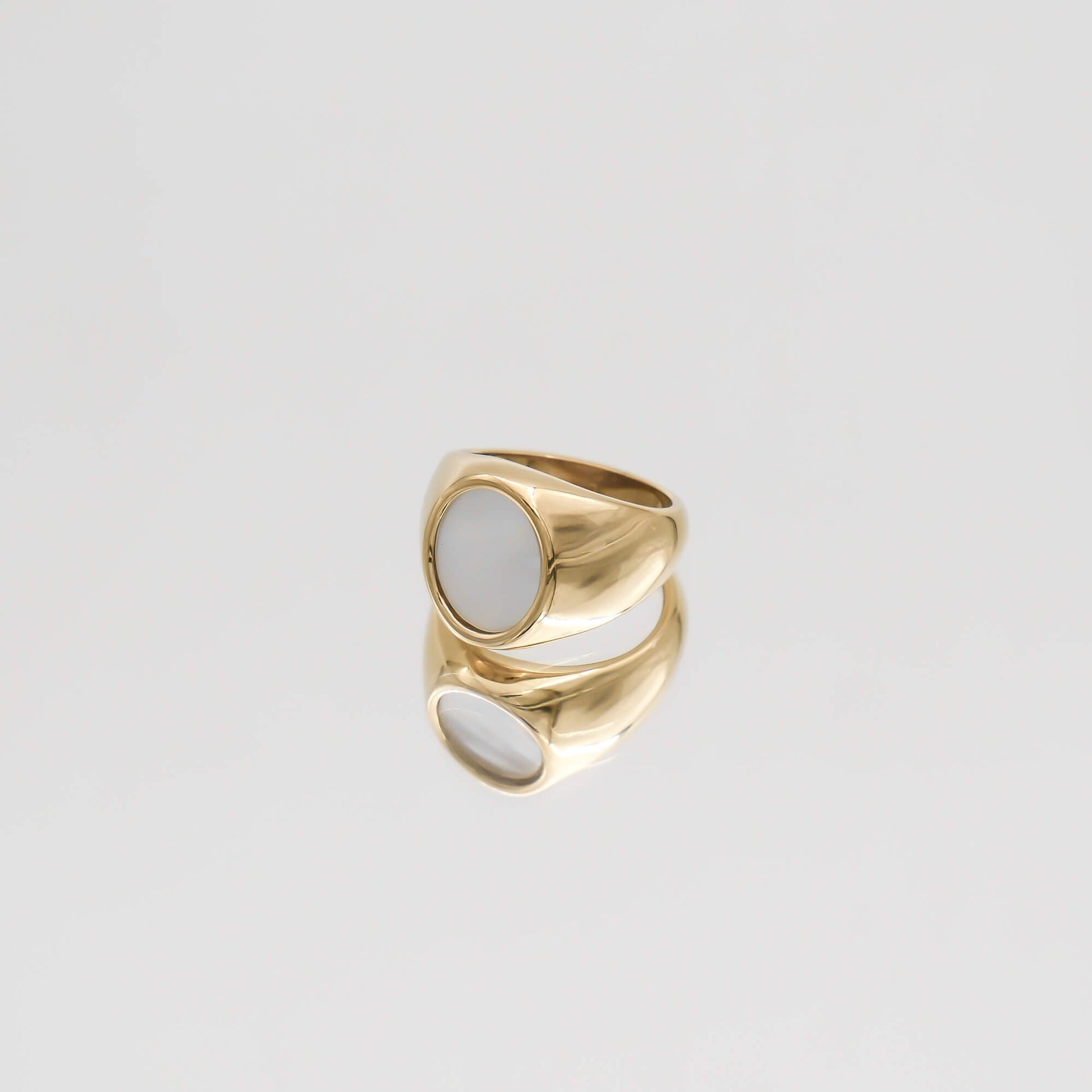Our Lani Opal Signet Ring is beautifully crafted and exudes elegance. Featuring a beautiful oval onyx style stone set in 18k gold plated stainless steel. This is a beautiful addition to any jewellery collection.
