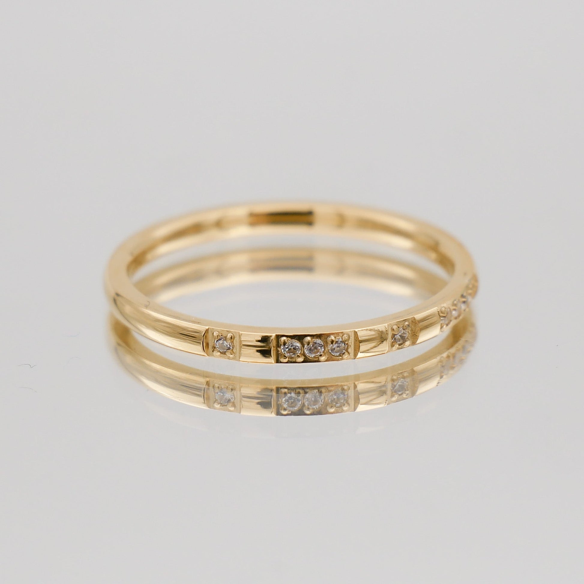 Our Leila Band Ring, features dainty crystals set into a comfortable and durable design. This elegant ring adds glamour to any outfit and is perfect for special occasions or everyday wear. It can also be stacked with other PRYA rings for a personalised and unique look. Experience the exquisite craftsmanship and versatility of this must-have addition to your jewellery collection.