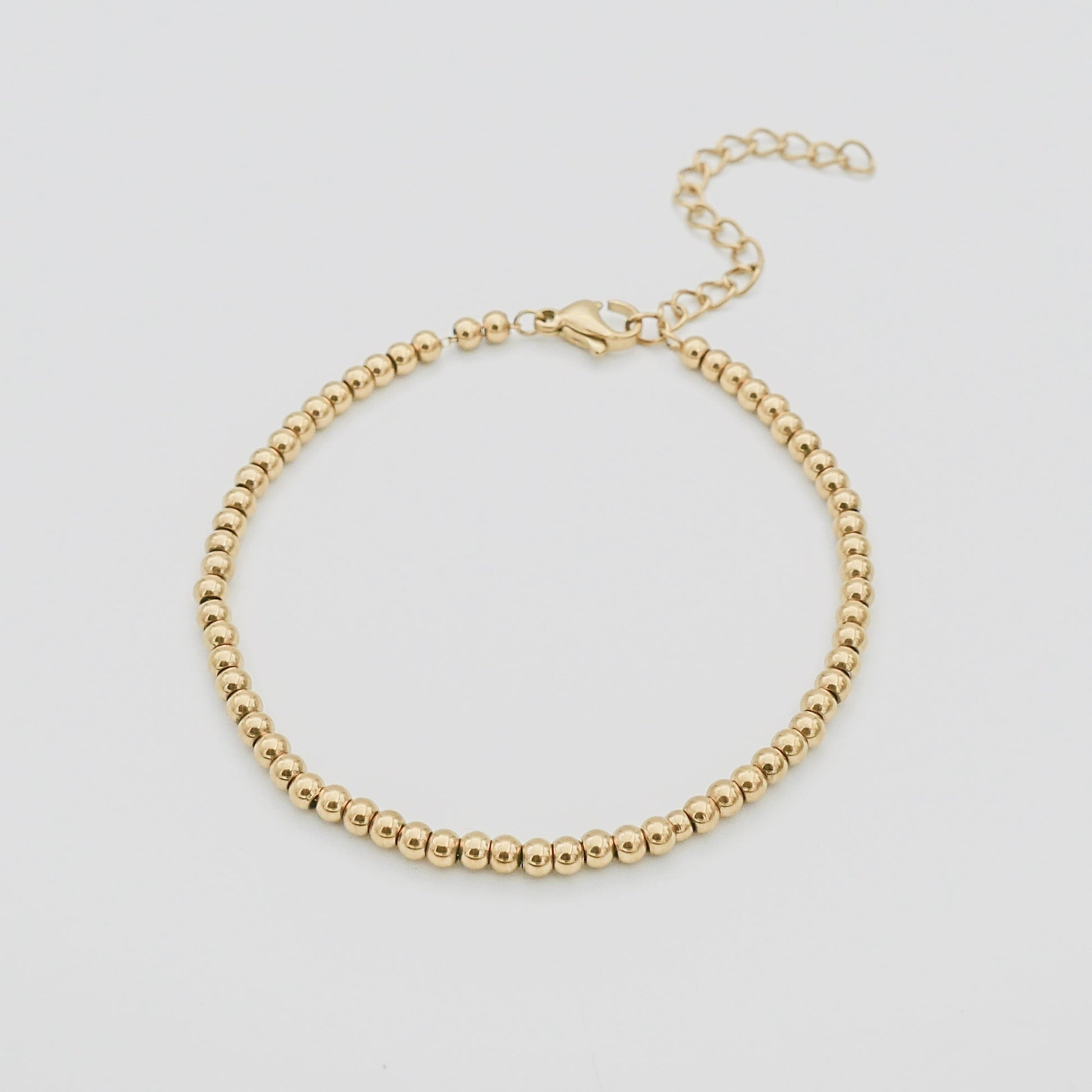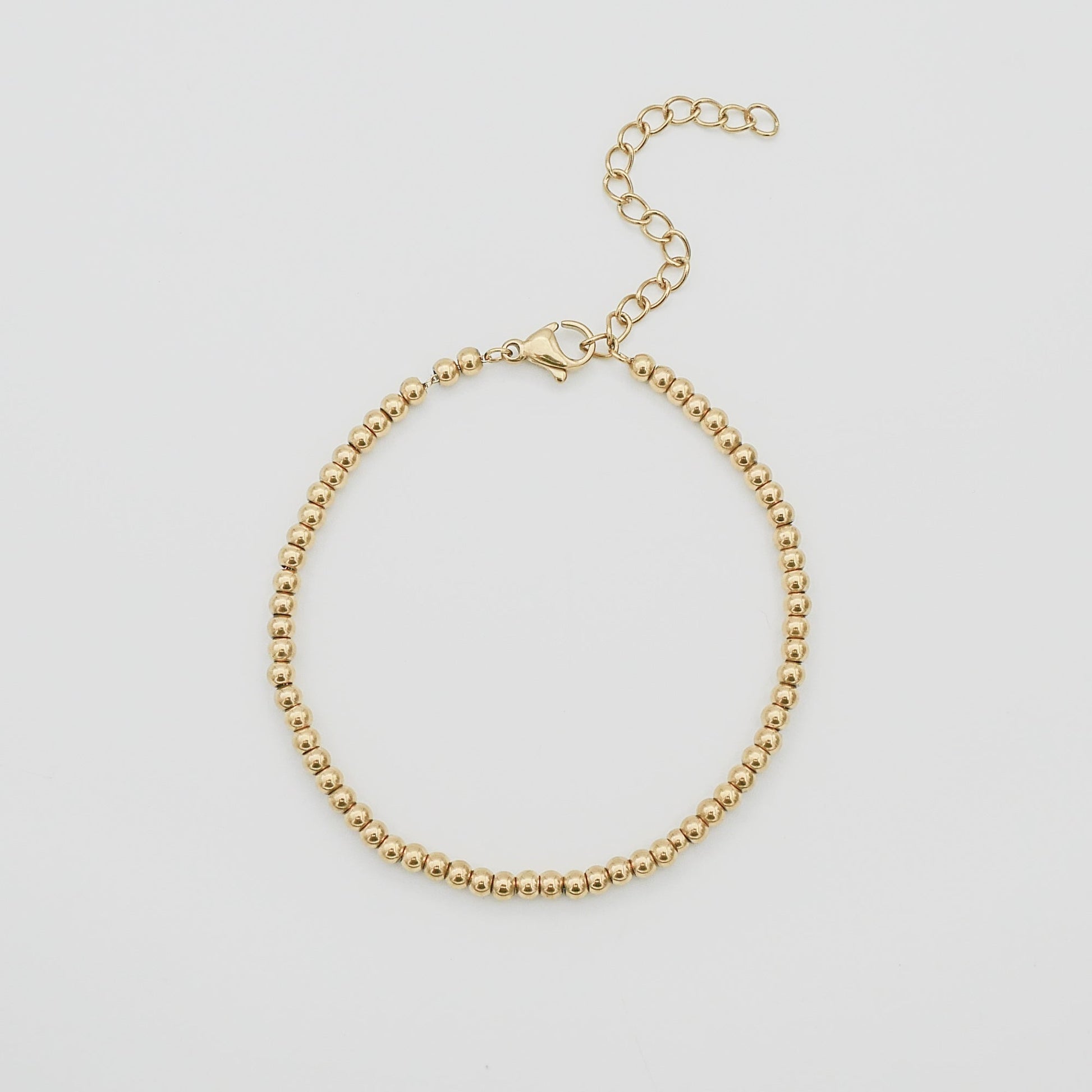 Perfect for adding a luxurious touch to your look, our Lena Sphere beaded bracelet is a jewellery box staple. Choose from a range of chain thicknesses or stack them for a unique touch. Dress up any outfit with this elegant statement piece. Pair with our Myla Beaded Heart Bracelet