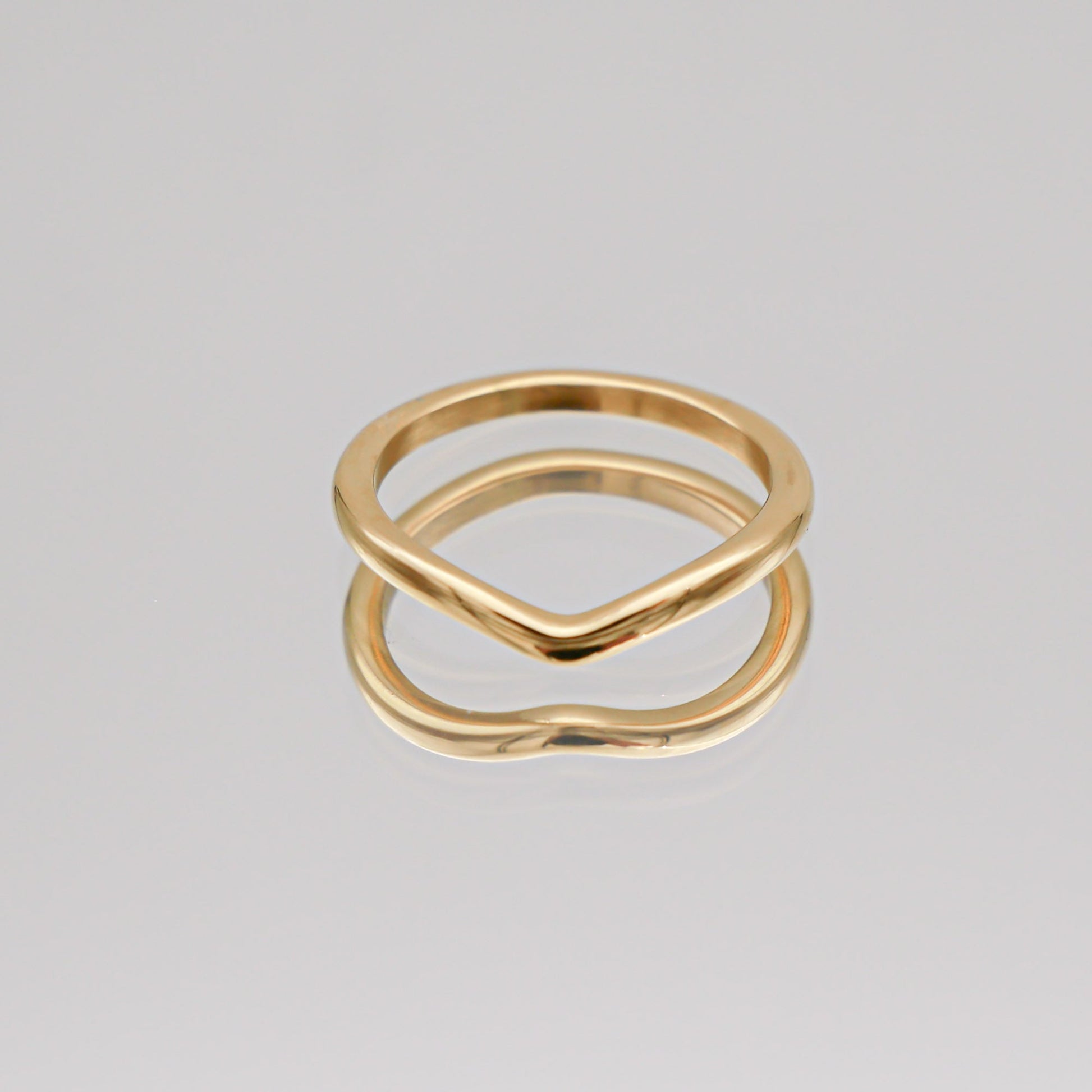 Add the finishing touch to your look with our Leona Chevron Ring. With its minimal design and bold, modern shape. The elegant V tapers gently away from the band, elongating the shape of your fingers, and can be worn in great, glimmering stacks or alone as a minimal statement piece. Wear as a midi ring to create a stacking look.