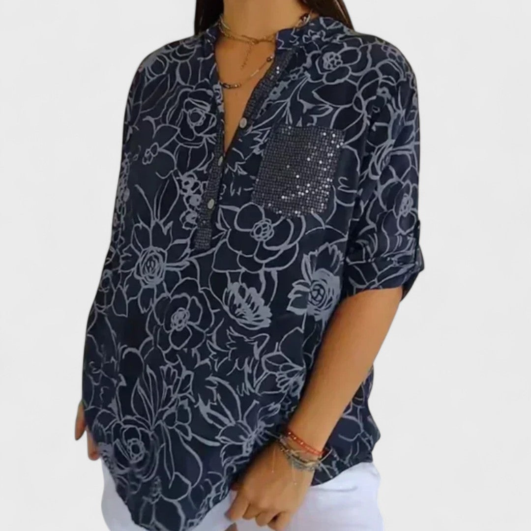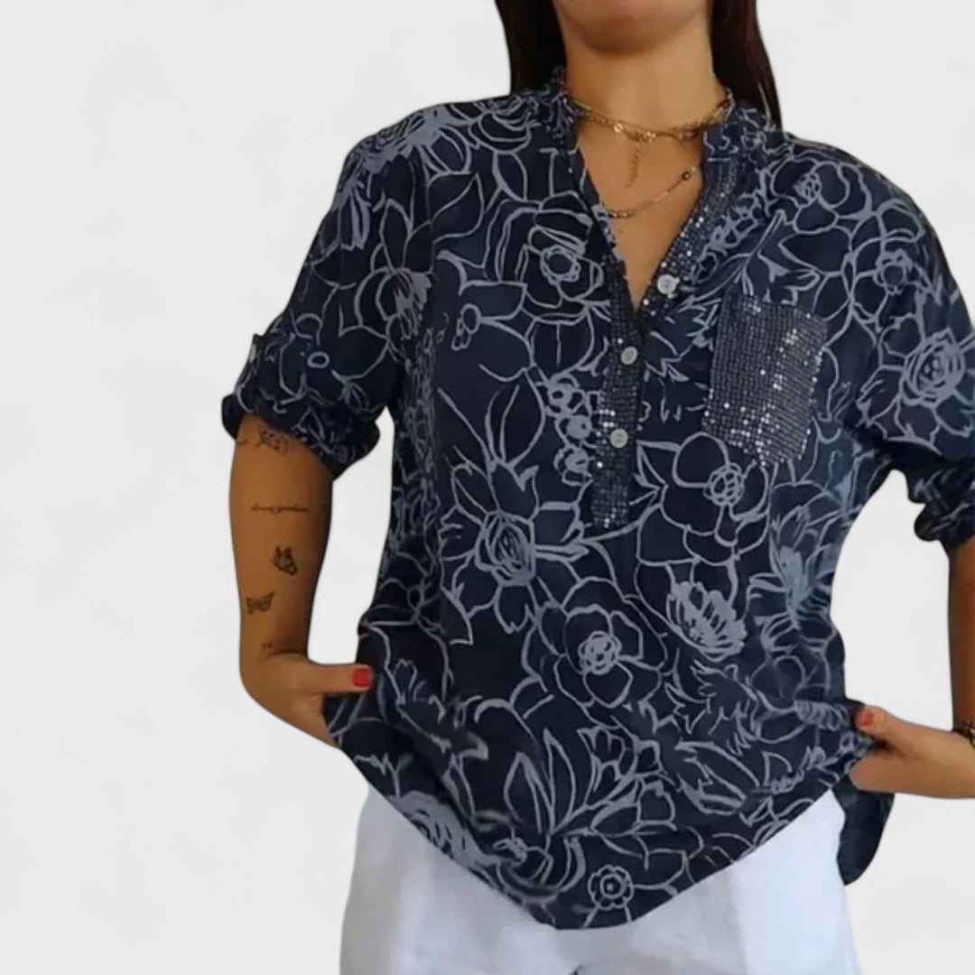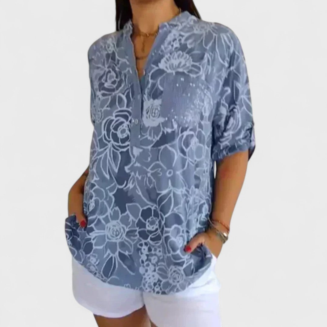 La blusa Lotte dona un tocco di fascino estivo al vostro guardaroba. Con la sua stampa floreale giocosa e la vestibilità ampia, questa blusa è leggera e confortevole. Perfetta per un abbigliamento casual o per un abbinamento elegante.