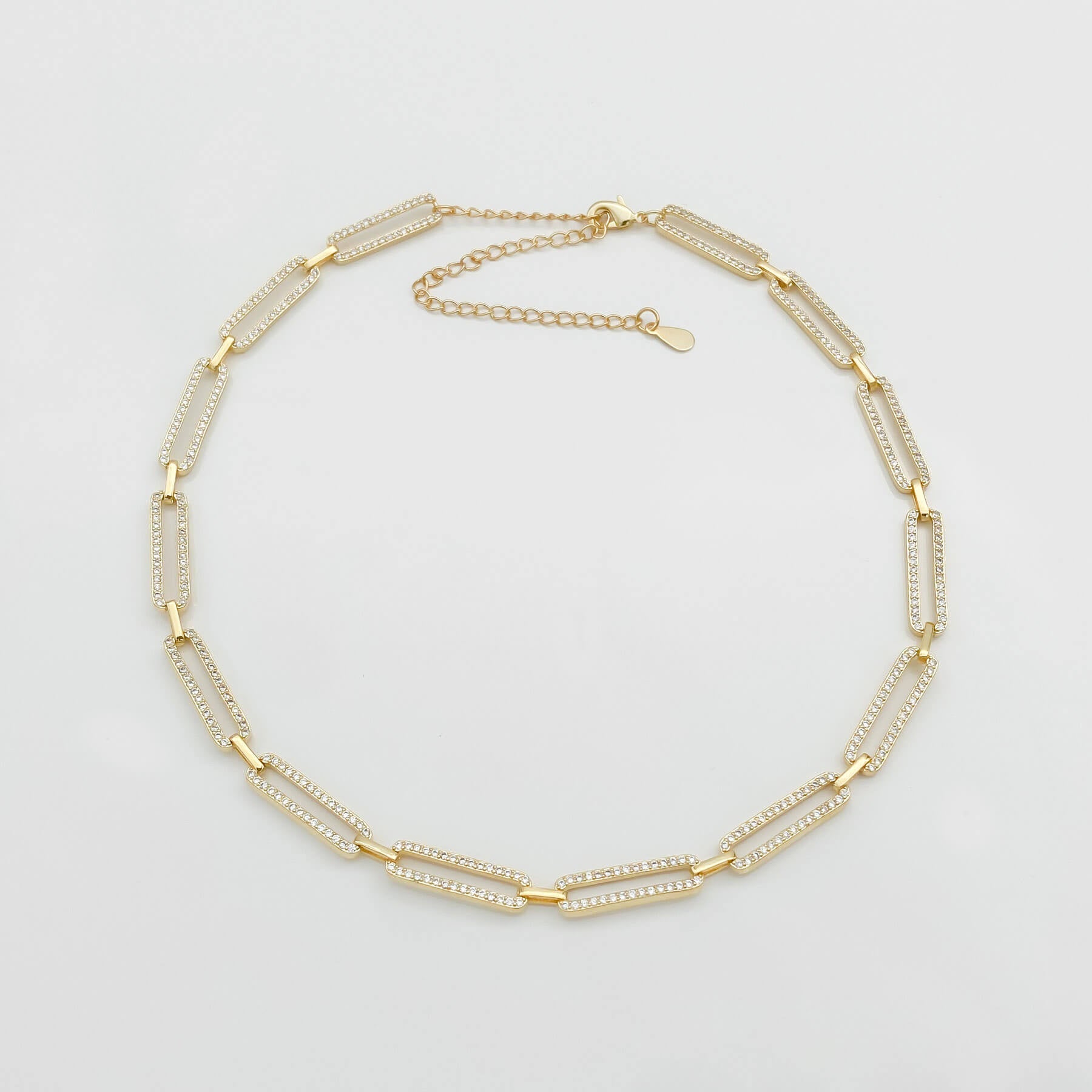 Our Lyla Link Choker is a beautiful statement piece. Crafted from 18k gold or silver filled stainless steel, it features the highest grade hand set Cubic Zirconia stones to keep it shining from all angles.