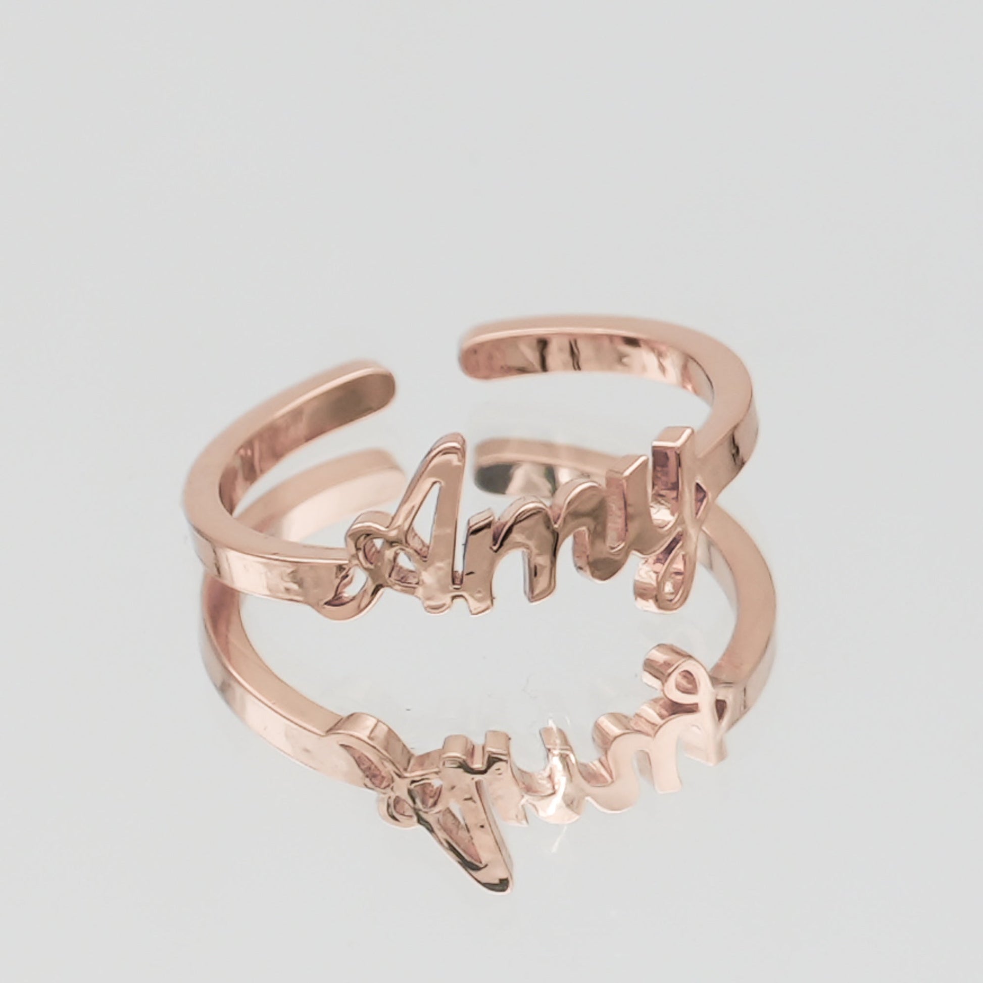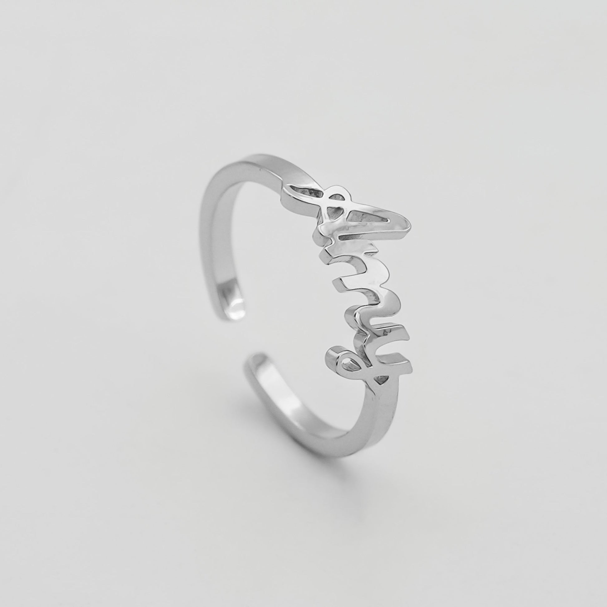 Crafted with meticulous care and precision, the Miami Custom Name Ring is a fashionable accessory that adds a distinct personal touch to your style, making it truly yours. Customise it with your desired name, turning it into a thoughtful gift for yourself or a special someone. This elegant ring embodies the essence of Miami's custom design while maintaining a sleek and modern aesthetic.